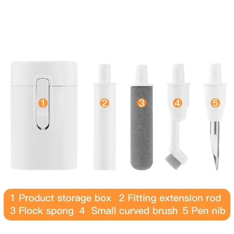 Este conjunto compacto incluye cuatro Herramientas de limpieza esenciales, que proporcionan una limpieza eficiente para sus dispositivos electrónicos. Mantenga su auricular impecable y en las mejores condiciones con nuestro kit todo en uno.