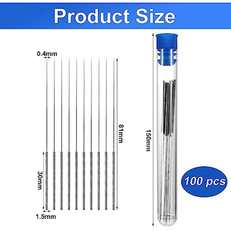 Paquete incluido: Recibirá 100 agujas de limpieza de impresora 3D de 30/, 10 agujas por tubo de almacenamiento, 10 tubos en total. Cantidad suficiente para satisfacer sus necesidades diarias de uso y reemplazo.