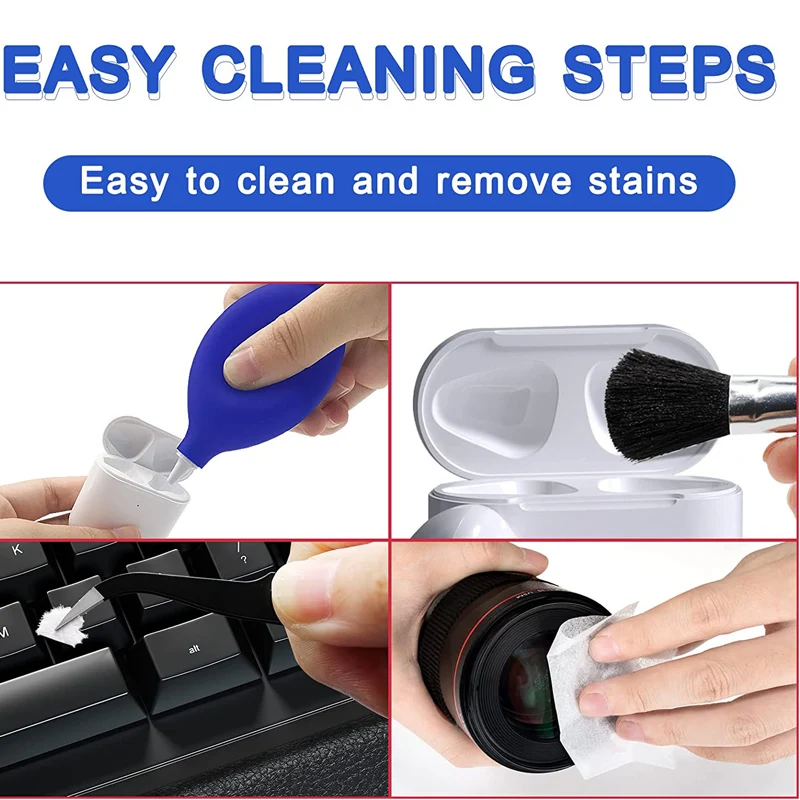 QUÉ LLAMADA: kit de limpieza, removedor de polvo, ampliar el tiempo de servicio.Kit de limpieza eficaz de herramientas para el polvo de sus dispositivos electrónicos.aleje su dispositivo electrónico del polvo, la arena, la suciedad y los escombros.