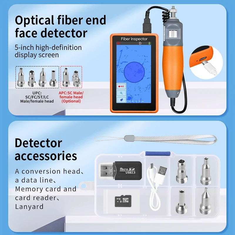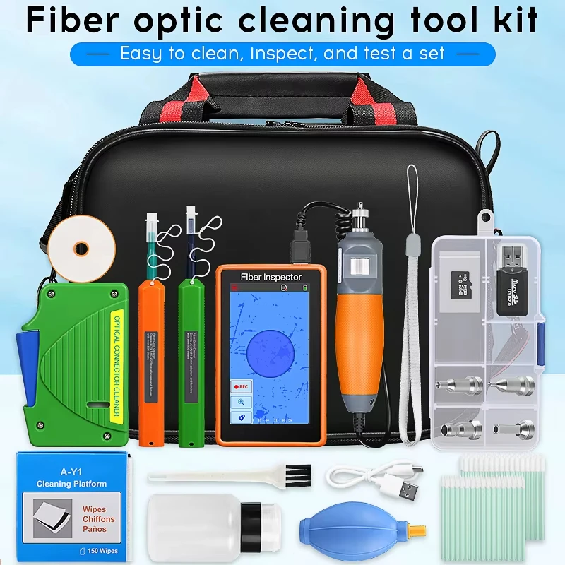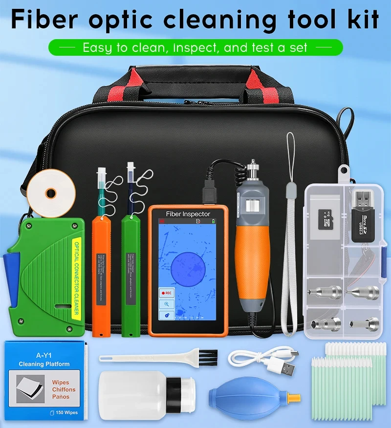 Kit de limpieza de fibra óptica COMPTYCO AUA-600 con inspección, sonda de inspección de microscopio de vídeo, caja limpiadora de pluma limpiadora de 1,25/2,5mm