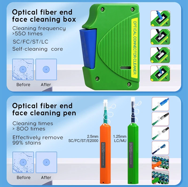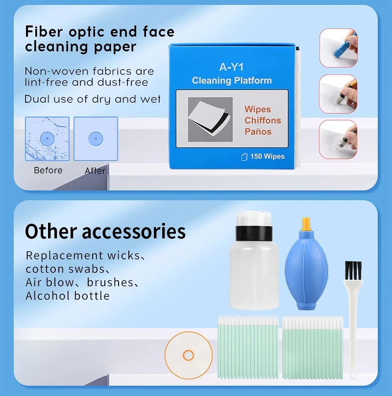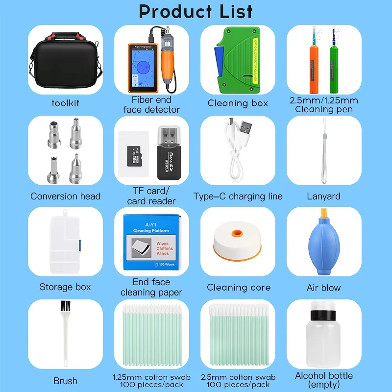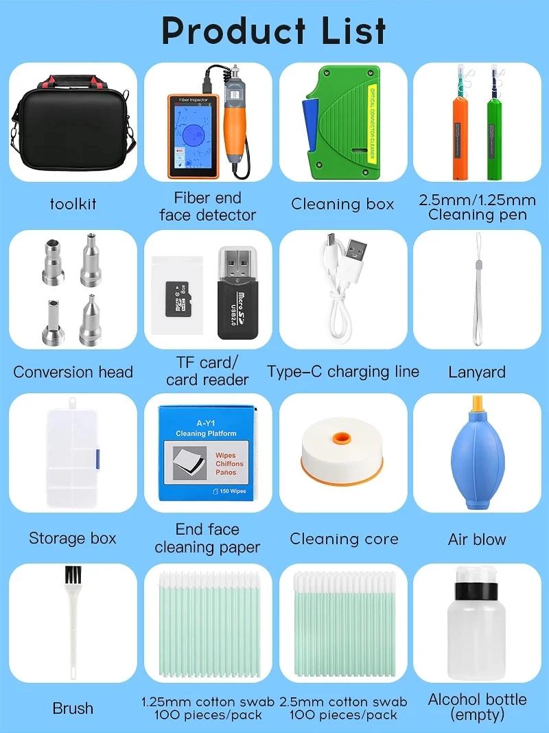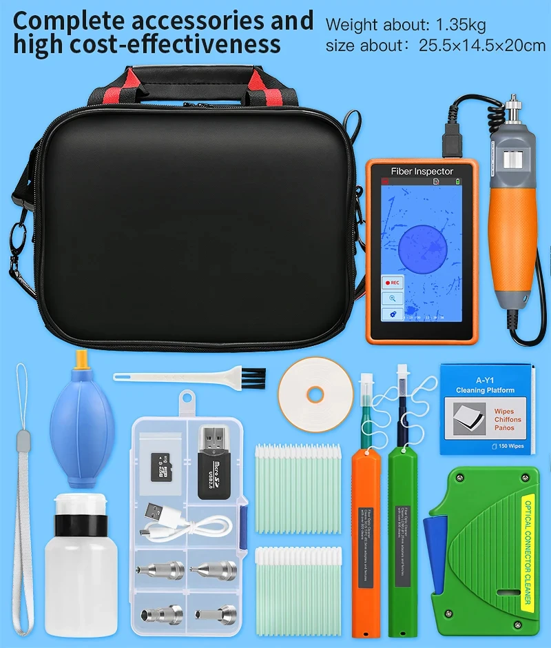 Comprar Kit de limpieza de fibra óptica COMPTYCO AUA-600 con inspección, sonda de inspección de microscopio de vídeo, caja limpiadora de pluma limpiadora de 1,25/2,5mm