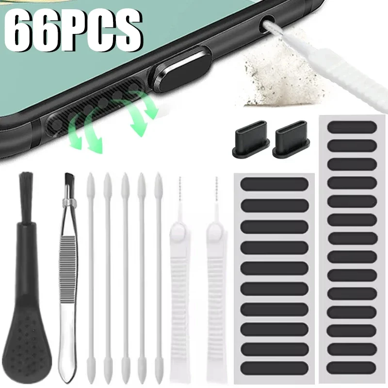 Kit de limpieza de puerto de carga de teléfono móvil, tapón antipolvo para iPhone 17 16 15, Samsung Xiaomi, altavoz, Kit de limpieza de pegatinas de malla antipolvo, cepillo