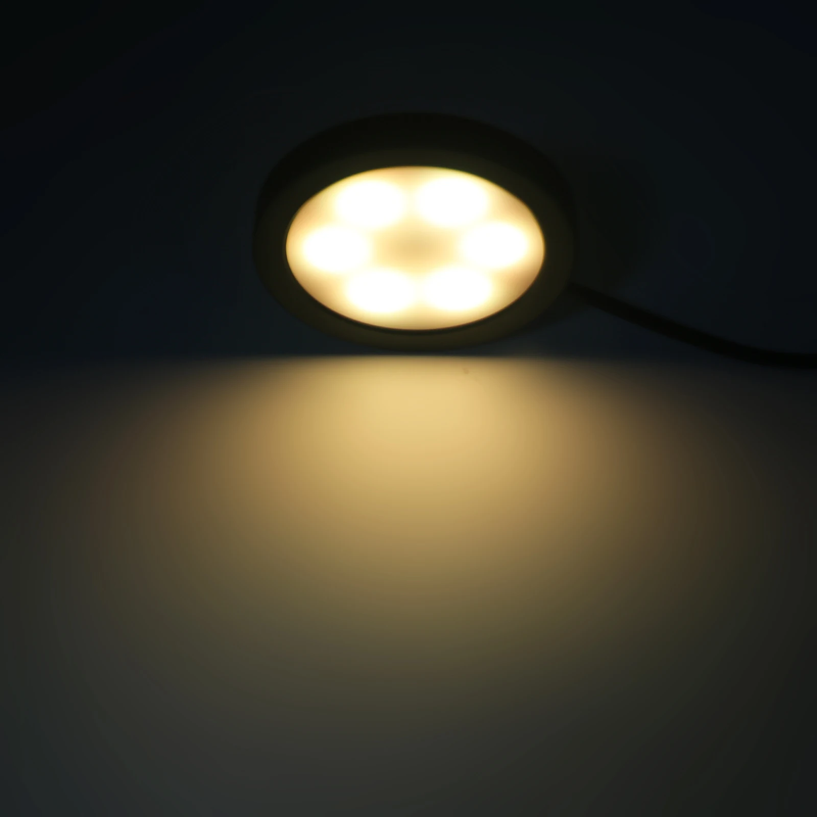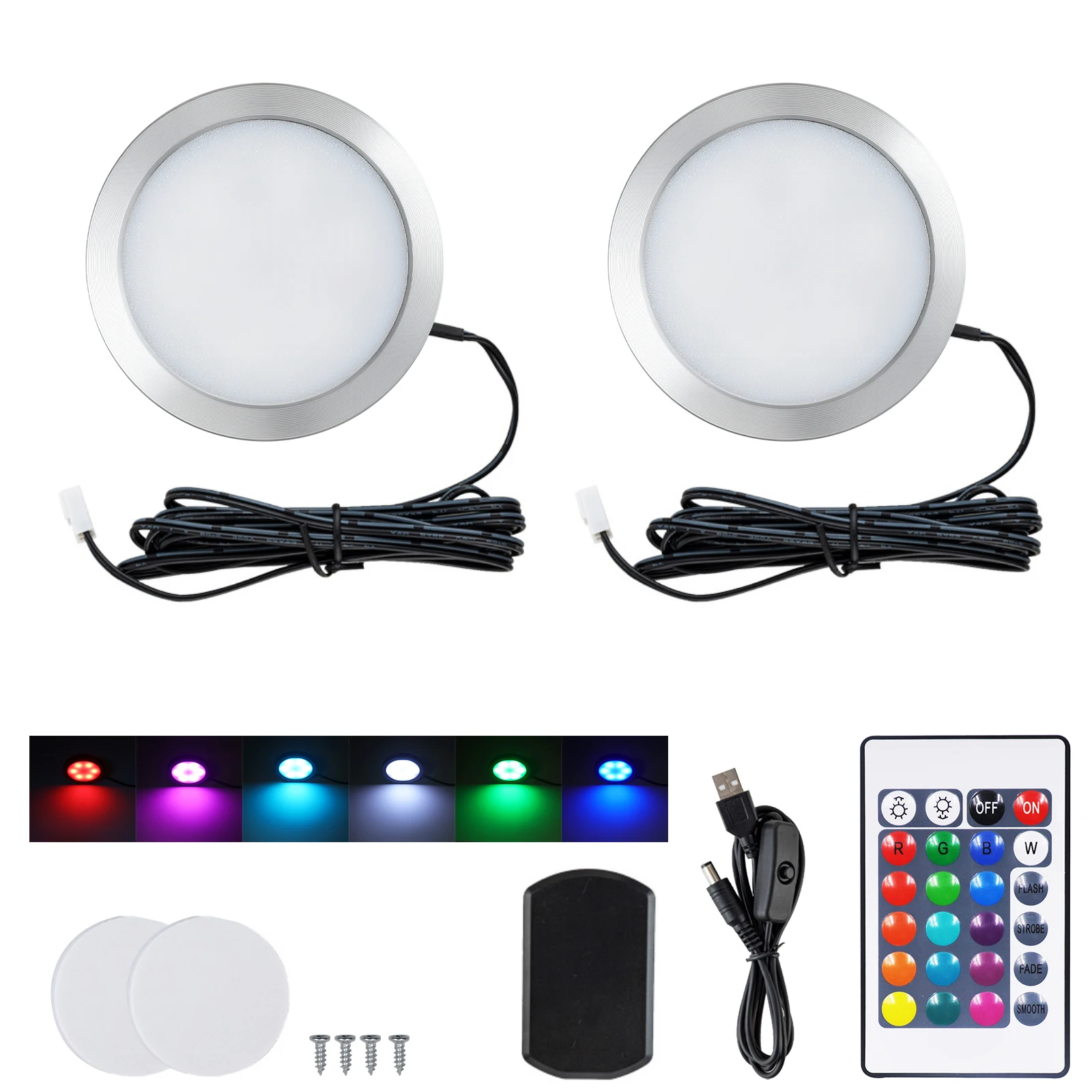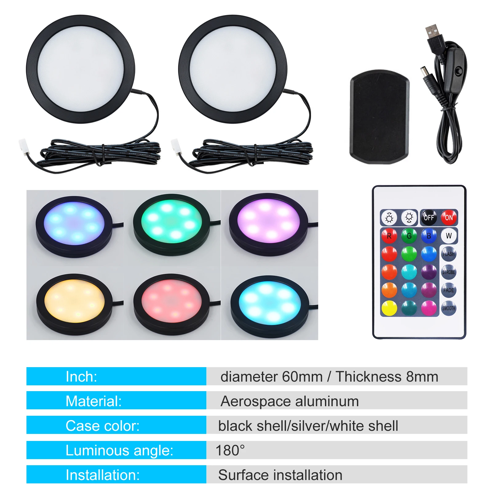 Comprar Kit de luz LED redondo para debajo del gabinete, interruptor USB de 5V, Control remoto, cambio de Color RGB, atenuación para estante de cocina, decoración de armario