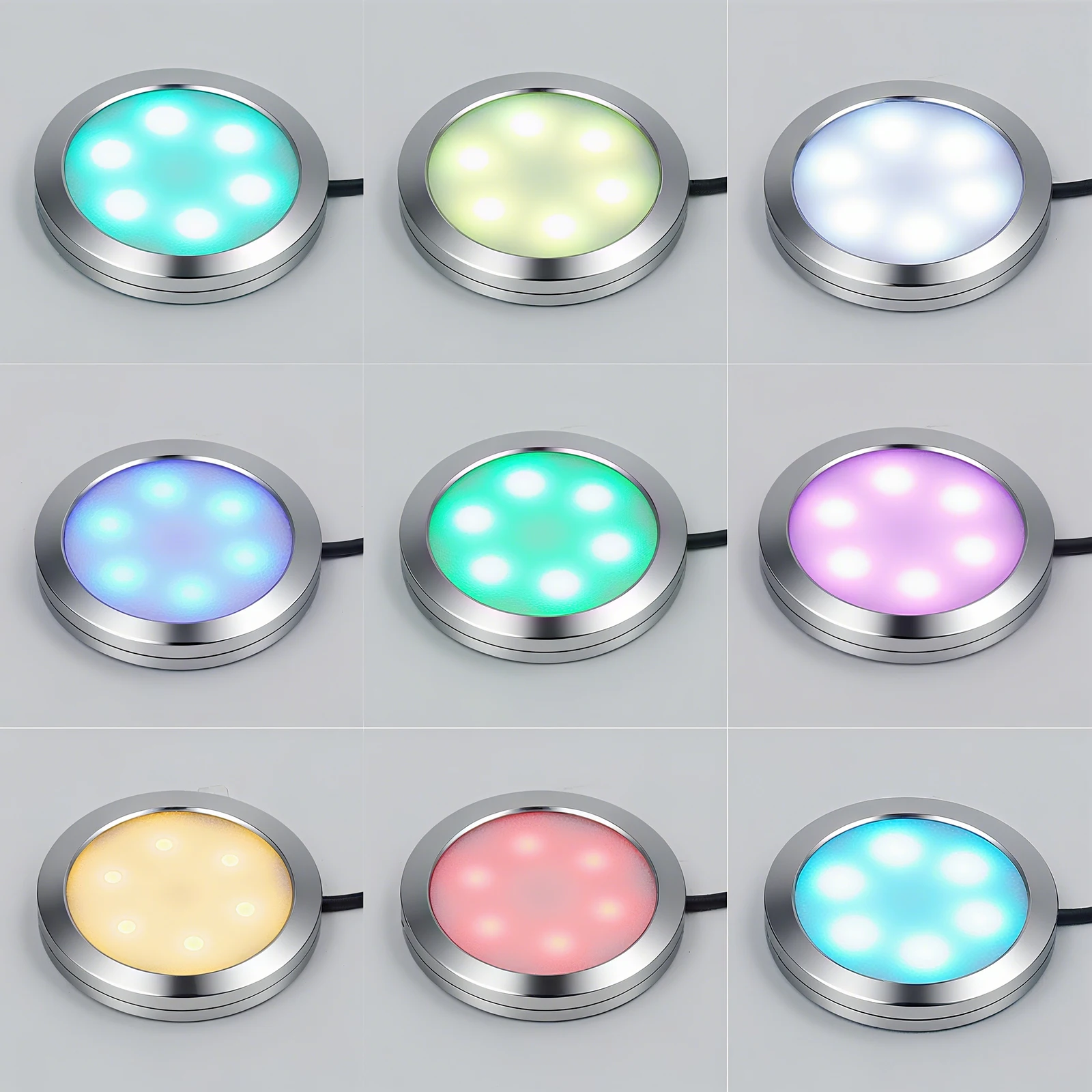 Nombre del producto: Kit de luz LED redonda debajo del gabinete RGB con control remoto