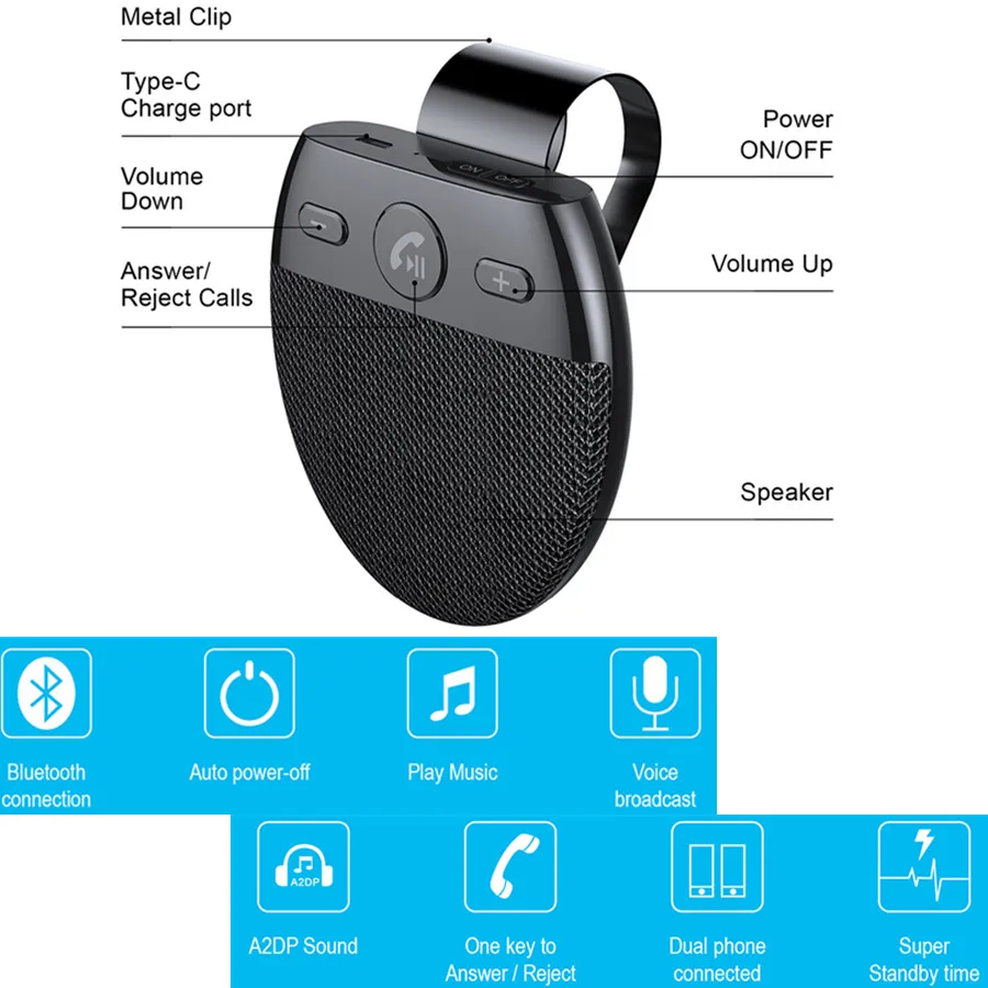 Comprar Kit de manos libres Bluetooth 5,0 para coche, receptor BT, adaptador, Kit de manos libres, receptor inalámbrico de Audio y música
