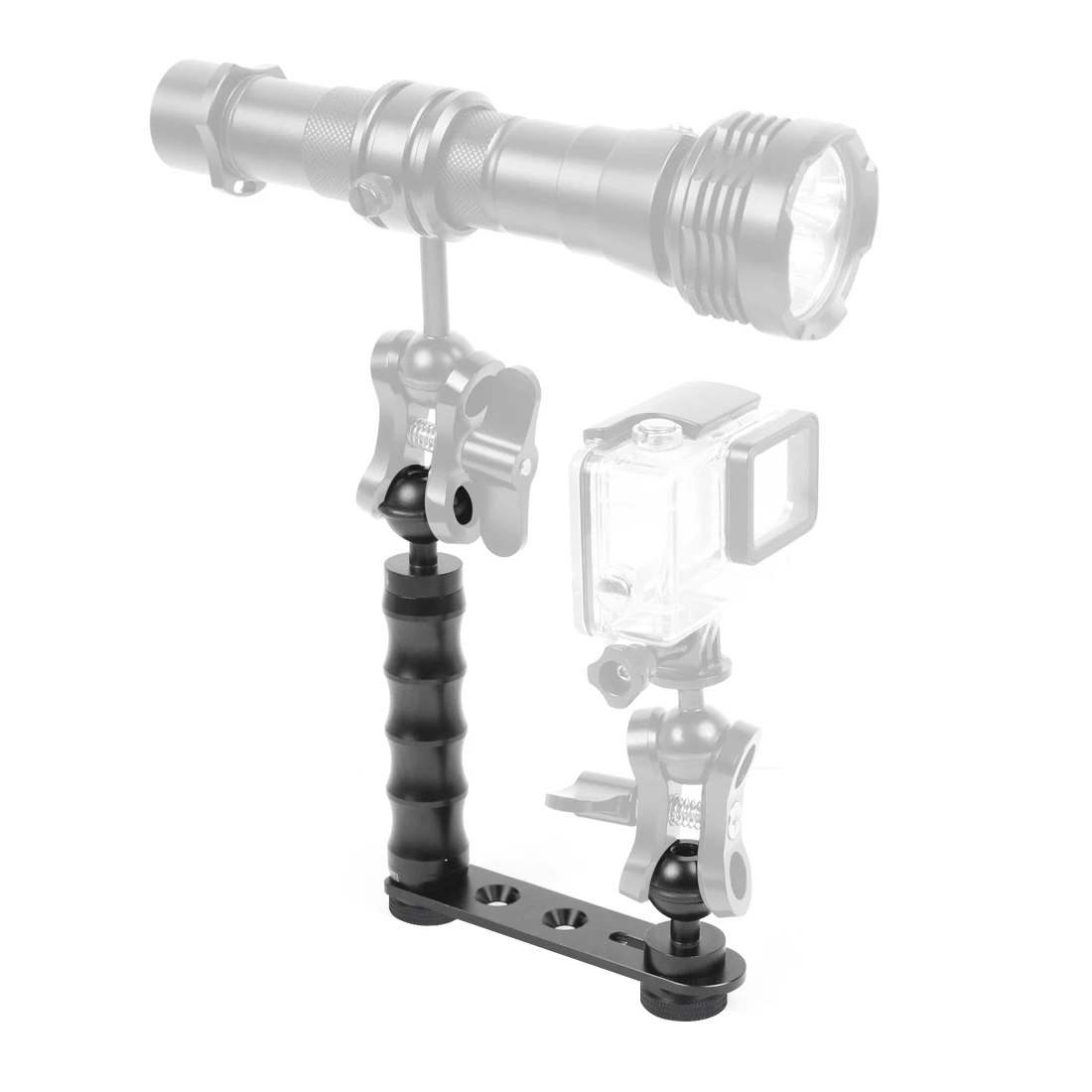 Este soporte de buceo tiene tres engranajes de ajuste manual y más opciones de distancia de mano.