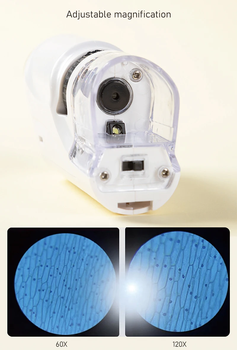El microscopio para niños puede hacer que los efectos de observación de los especímenes de cebolla bajo diferentes aumentos bajo un microscopio. El microscopio para niños admite que se pueden cambiar múltiplos múltiples 60X-120X, lo que satisface las necesidades de los estudiantes.