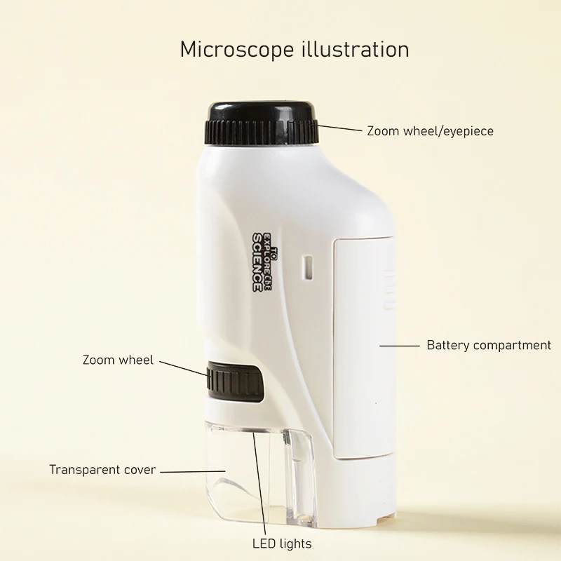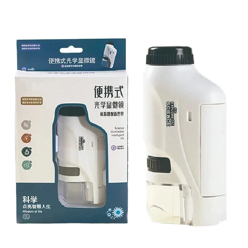 Microscopio de bolsillo se adapta a la forma de las manos de los niños, haciendo que el microscopio portátil sea más cómodo de sostener. Portátil, fácil de transportar y usar.
