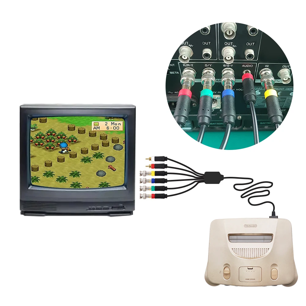 4) Se puede conectar directamente a CRT TV (Cable compuesto N64) O se utiliza conOSSC(Cable RGB para N64)