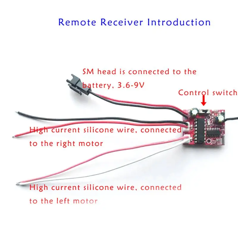 Placa receptora: 3,6 V - 10V (3-8 celdas de litio de 1,2 V o recargable para juguetes para coches de 4,8 V-7,2 V)