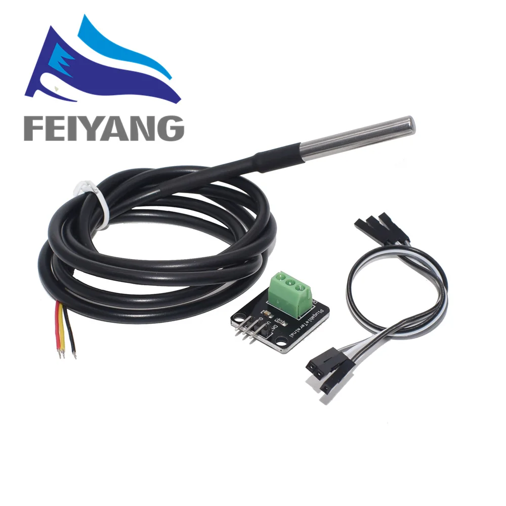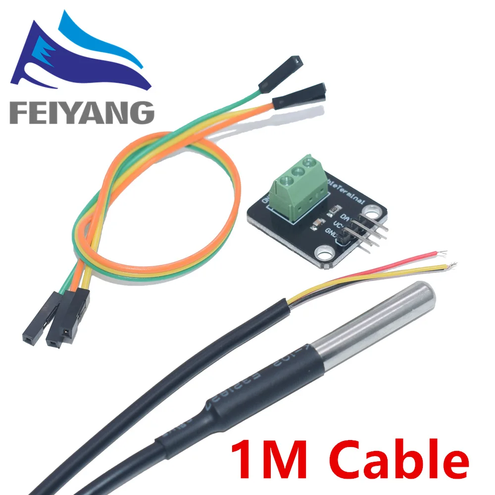 Comprar Kit de módulo de Sensor de temperatura DS18B20, Cable de Sensor Digital resistente al agua de 100CM, adaptador de Terminal de sonda de acero inoxidable para Arduino