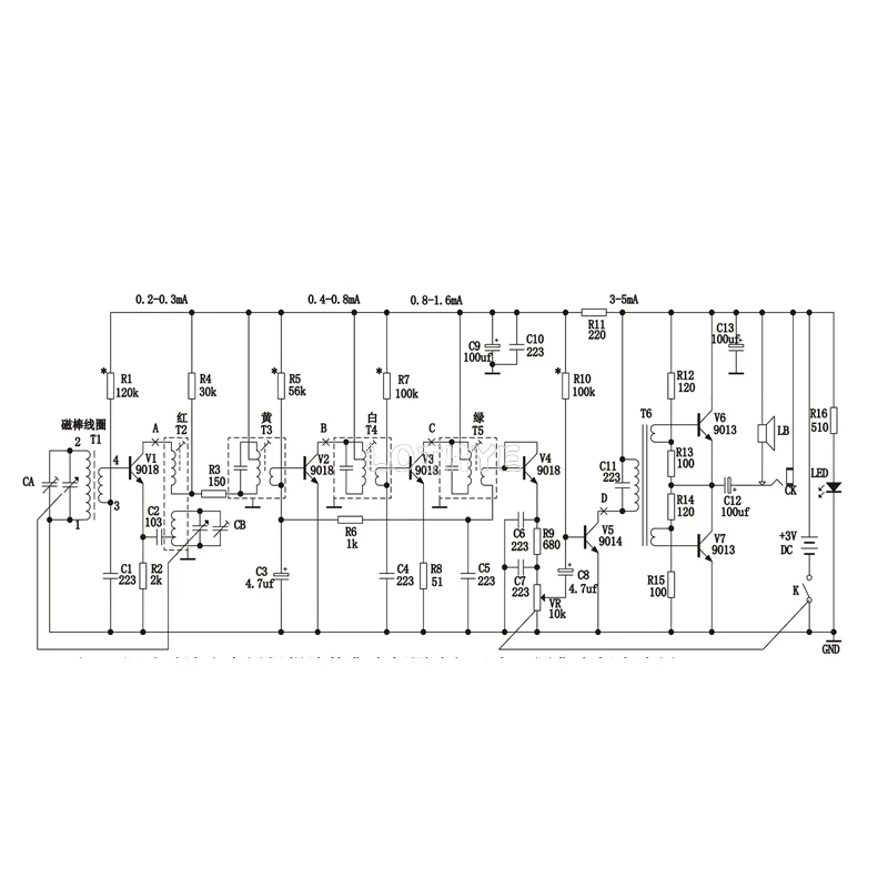 Este Kit de enseñanza es una radio superheterodina de siete tubos de silicona de bajo voltaje de 3V, que tiene las ventajas de