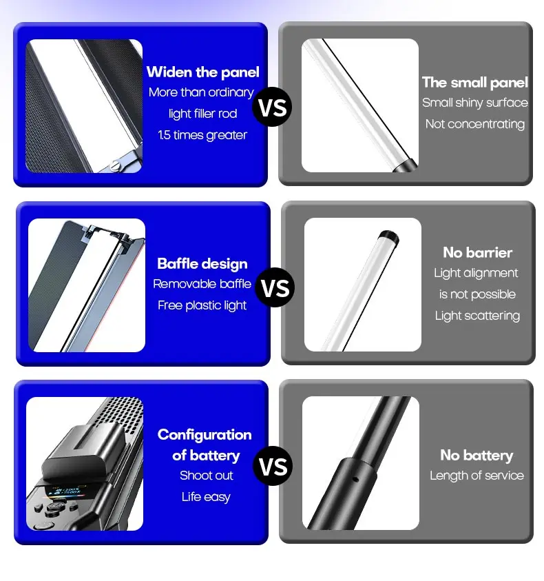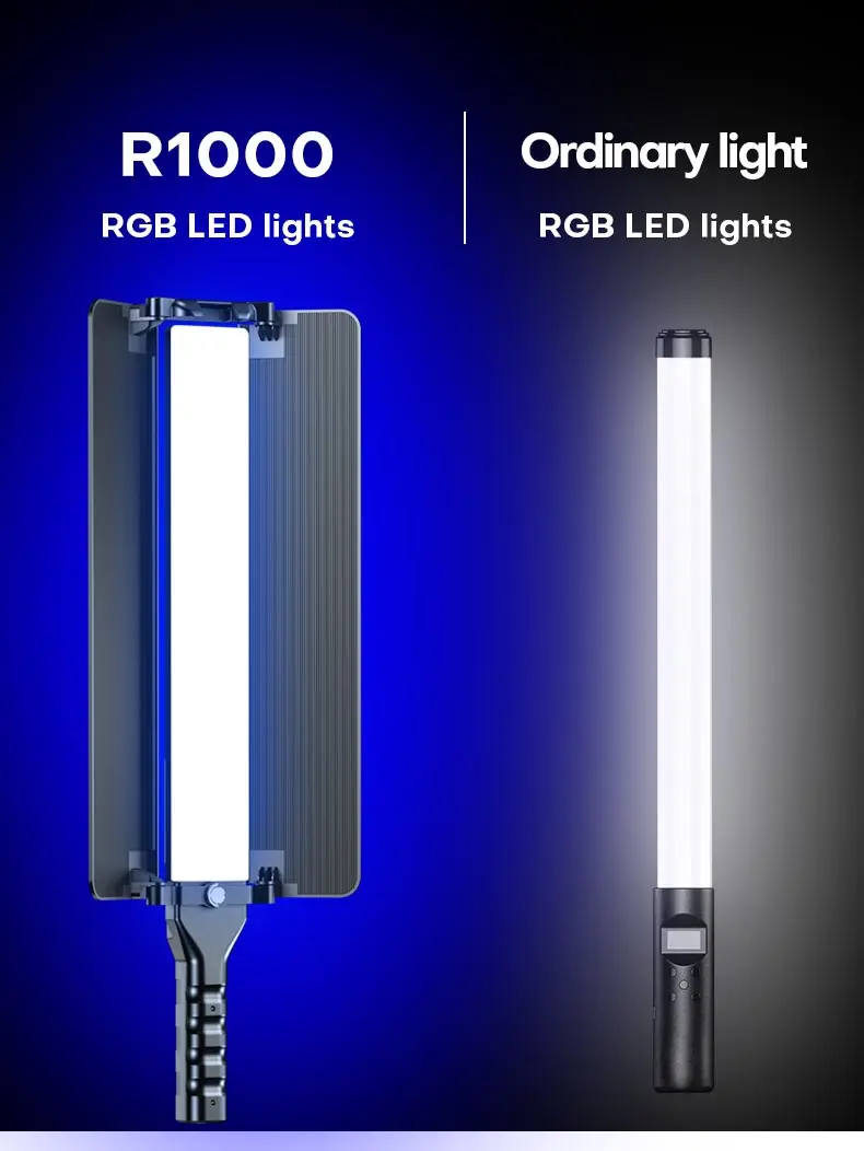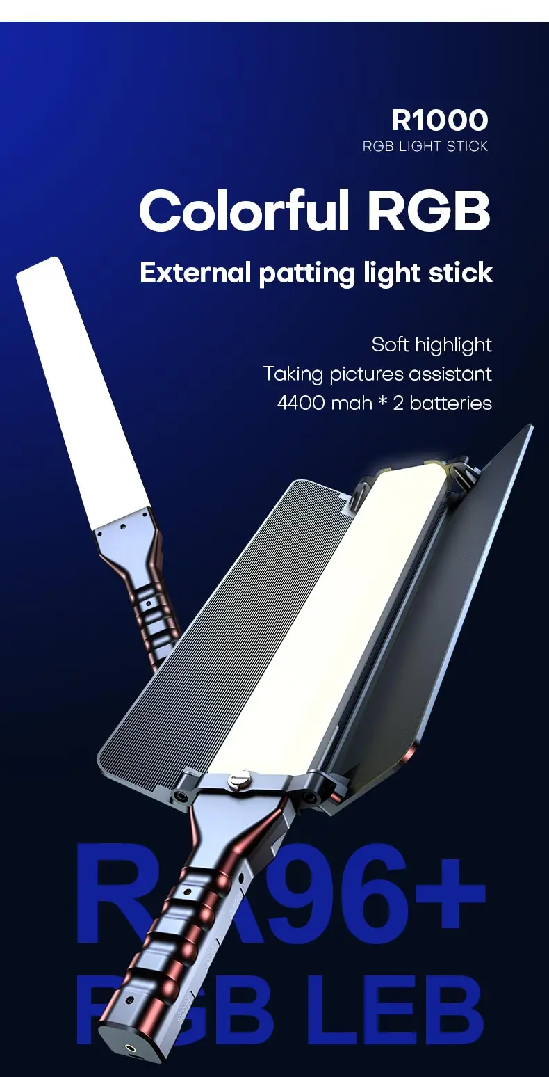 4. Colorful RGB Light Stick: Made of 243 high color rendering LED lamp beads, the brightness can reach 2200 lumens,You'll get all the colors in the RGB palette for creative product photos, artistic portraits, atmospheric film making and engaging video game live streaming.
