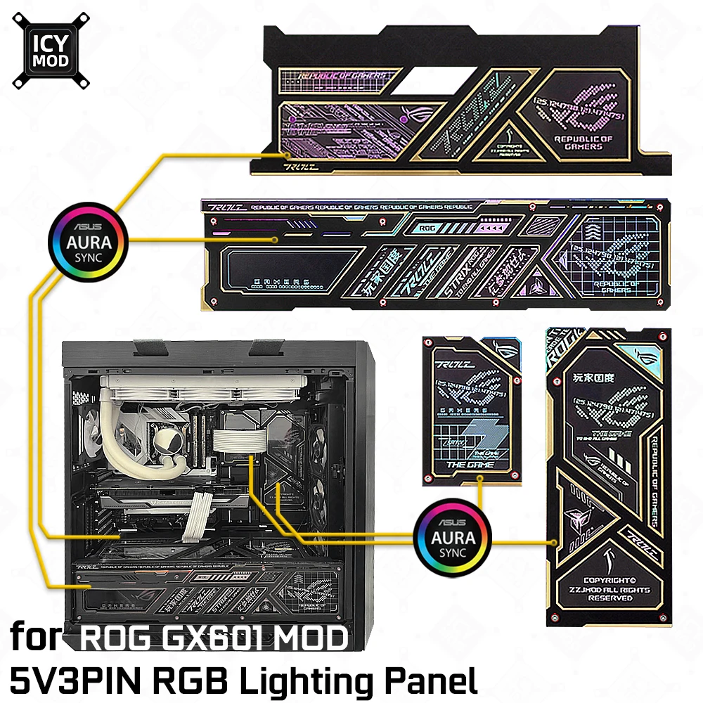 Comprar Kit de Panel ROG Strix Helios GX601, placa de iluminación grabada con láser ARGB, reajuste 5V3PIN, carcasa de PC personalizada MOD AURA SYNC, 4 Uds.