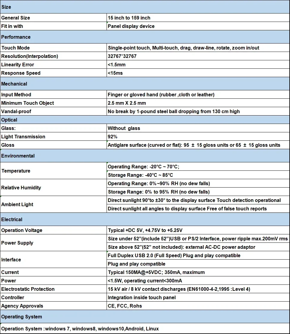 Súper ventajas para la pantalla multitáctil IR de 20 pulgadas y 10 puntos: