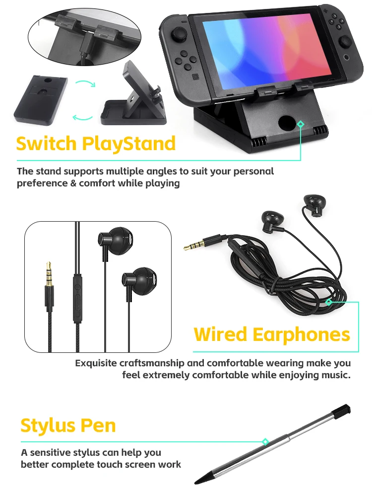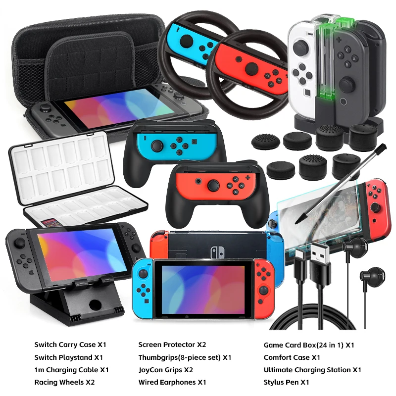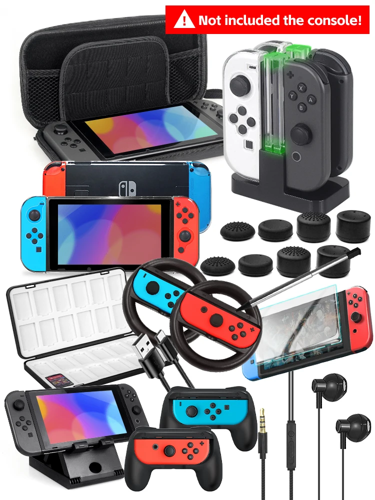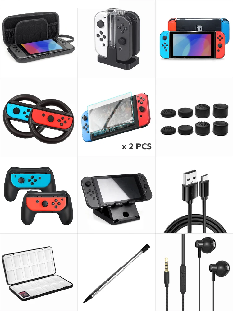 • Paquete completo de accesorios:Este paquete incluye todo lo que necesitas para mantener tus accesorios de Nintendo Switch organizados y protegidos.