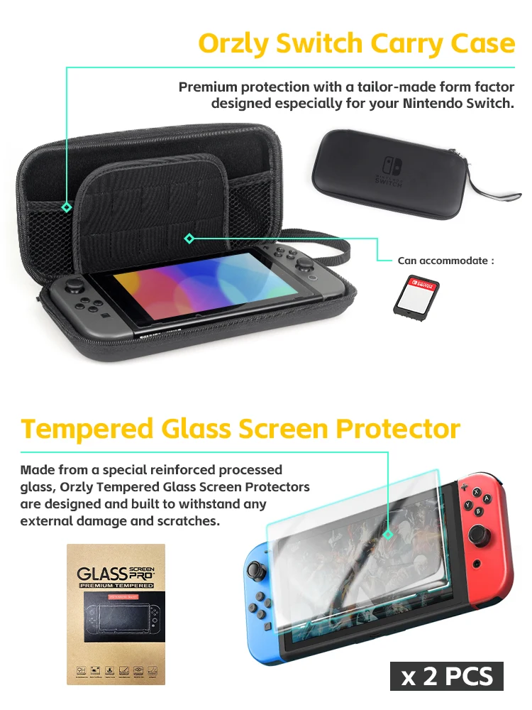Nuestro juego de accesorios para Nintendo Switch está hecho para complementar tu Nintendo Switch, pero también es compatible con la Nintendo Switch original. Está disponible en accesorios que ofrecen una protección total, como un estuche para Switch y un protector de pantalla para Nintendo Switch, perfecto para viajes o almacenamiento, o un estuche de agarre para que tu Switch sea más cómoda.