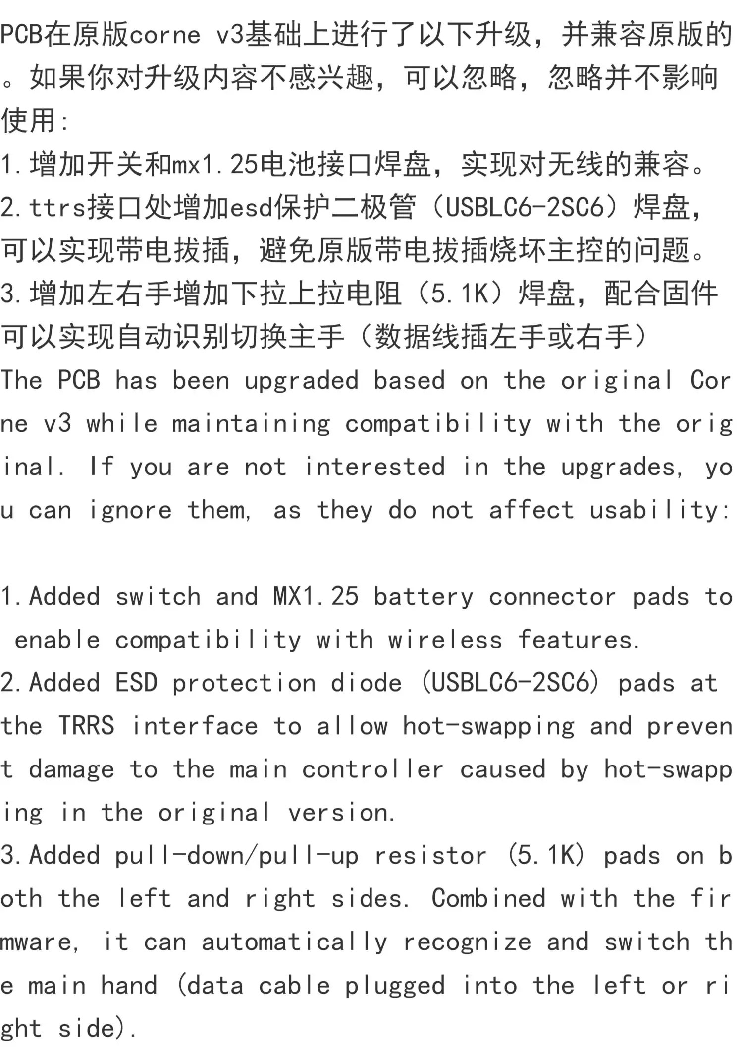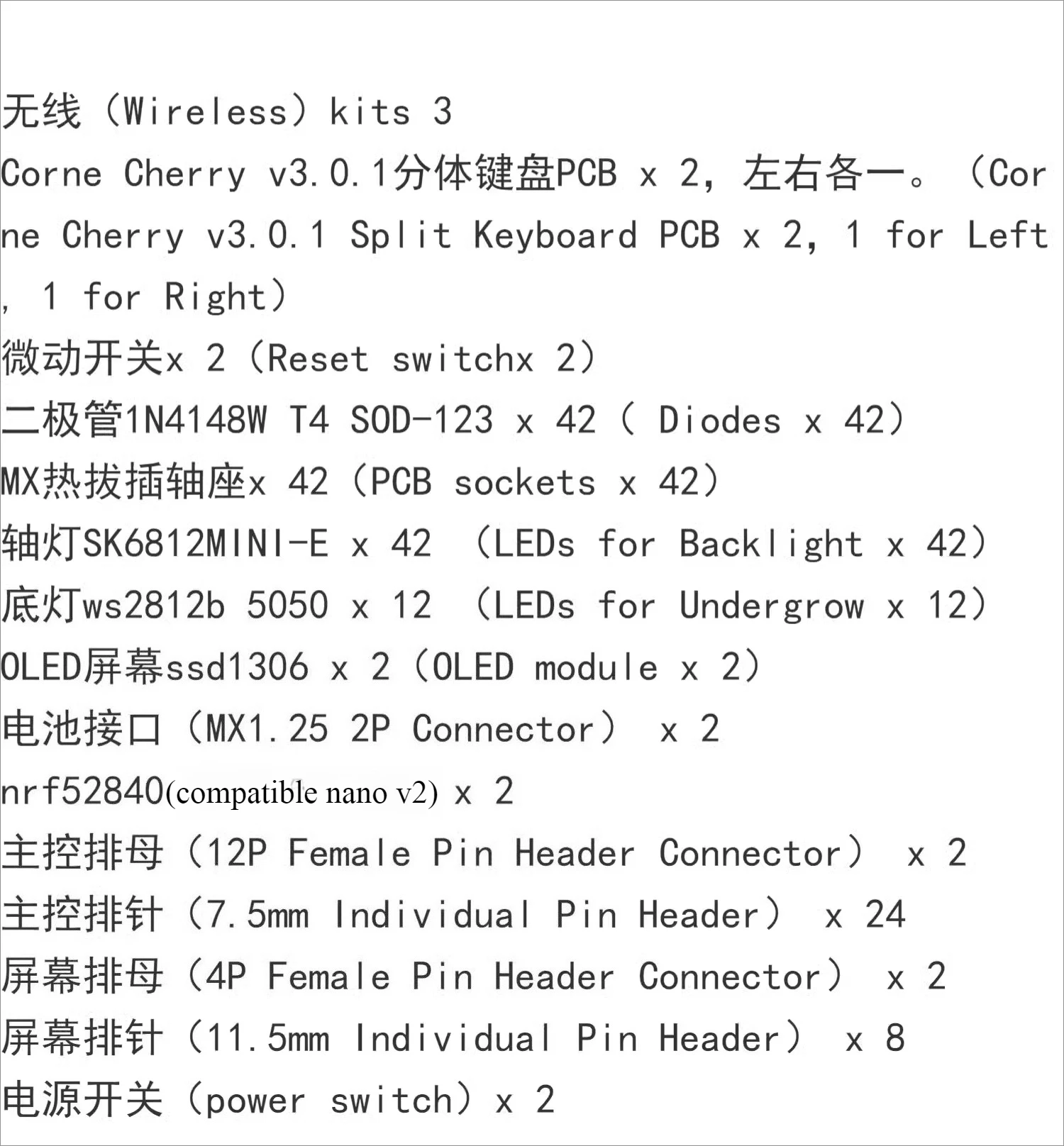 Kit PCB hotswap de teclado dividido Corne v3 con cable o inalámbrico (PCB no preconstruir)