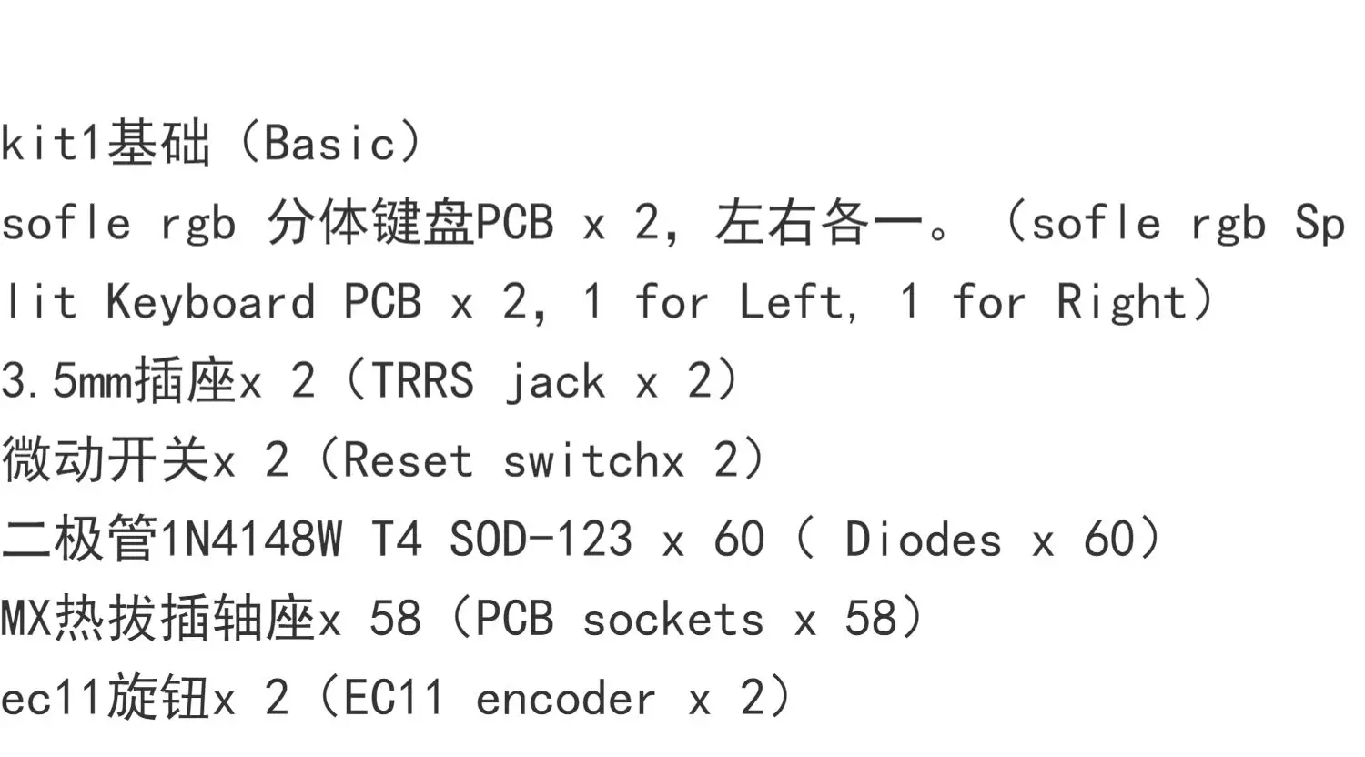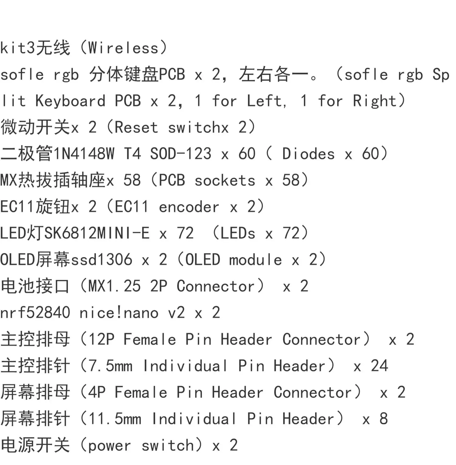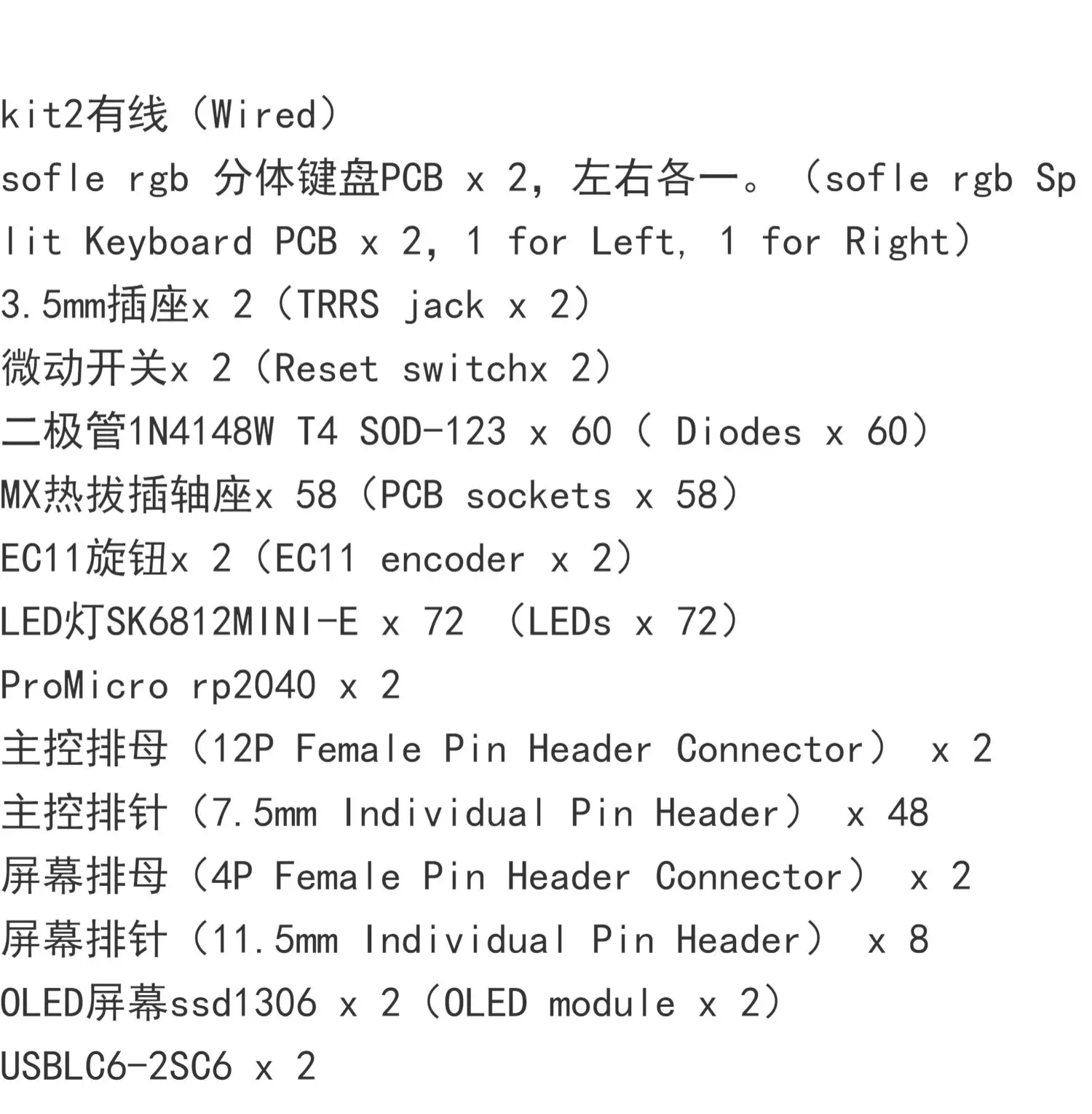 Kit PCB de teclado dividido Sofle RGB programable con cable o inalámbrico (no preconstruir)