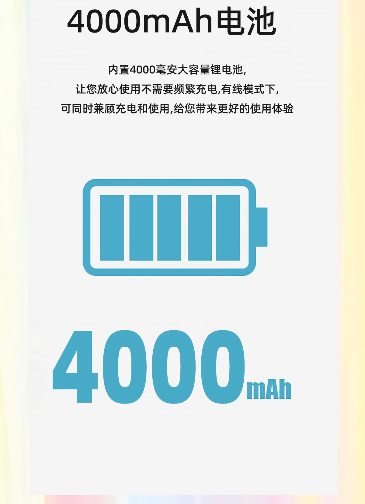 GrandeBatería incorporada de 4000 mAhpara uso prolongado sin carga frecuente.