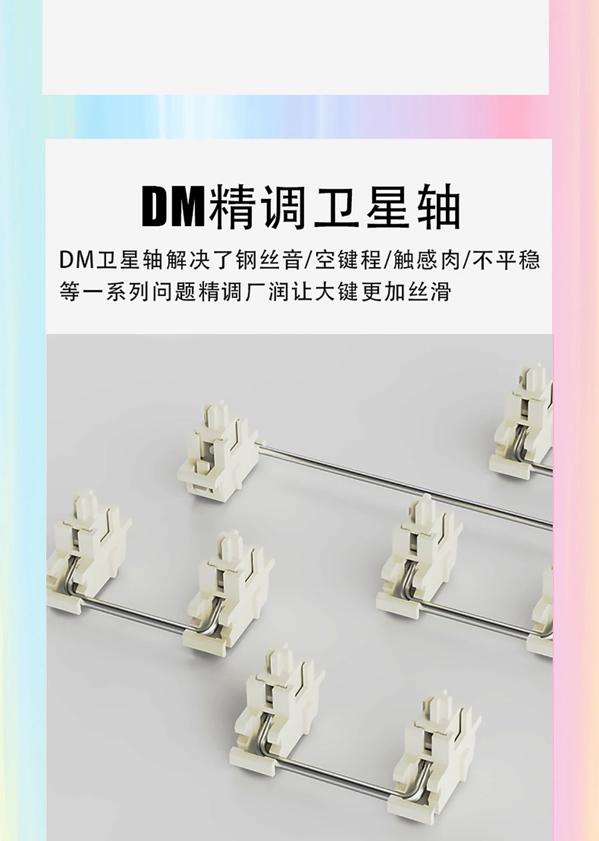 Estabilizadores DM lubricados de fábrica y finamente ajustadosElimine el ruido del alambre, el sonajero y la solidez para lograr pulsaciones de teclas más suaves.