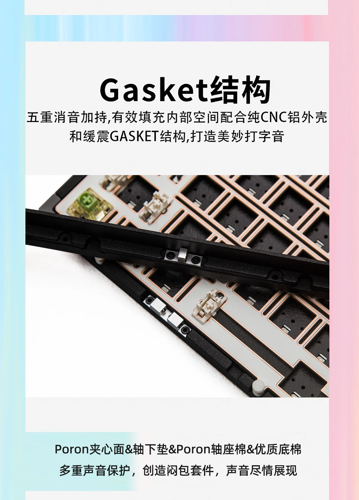 Amortiguación de sonido multicapa conAlfombrilla para sándwich Doron, alfombrilla para interruptores, alfombrilla base Poron y espuma inferior de calidadCrea un perfil de sonido "thock".