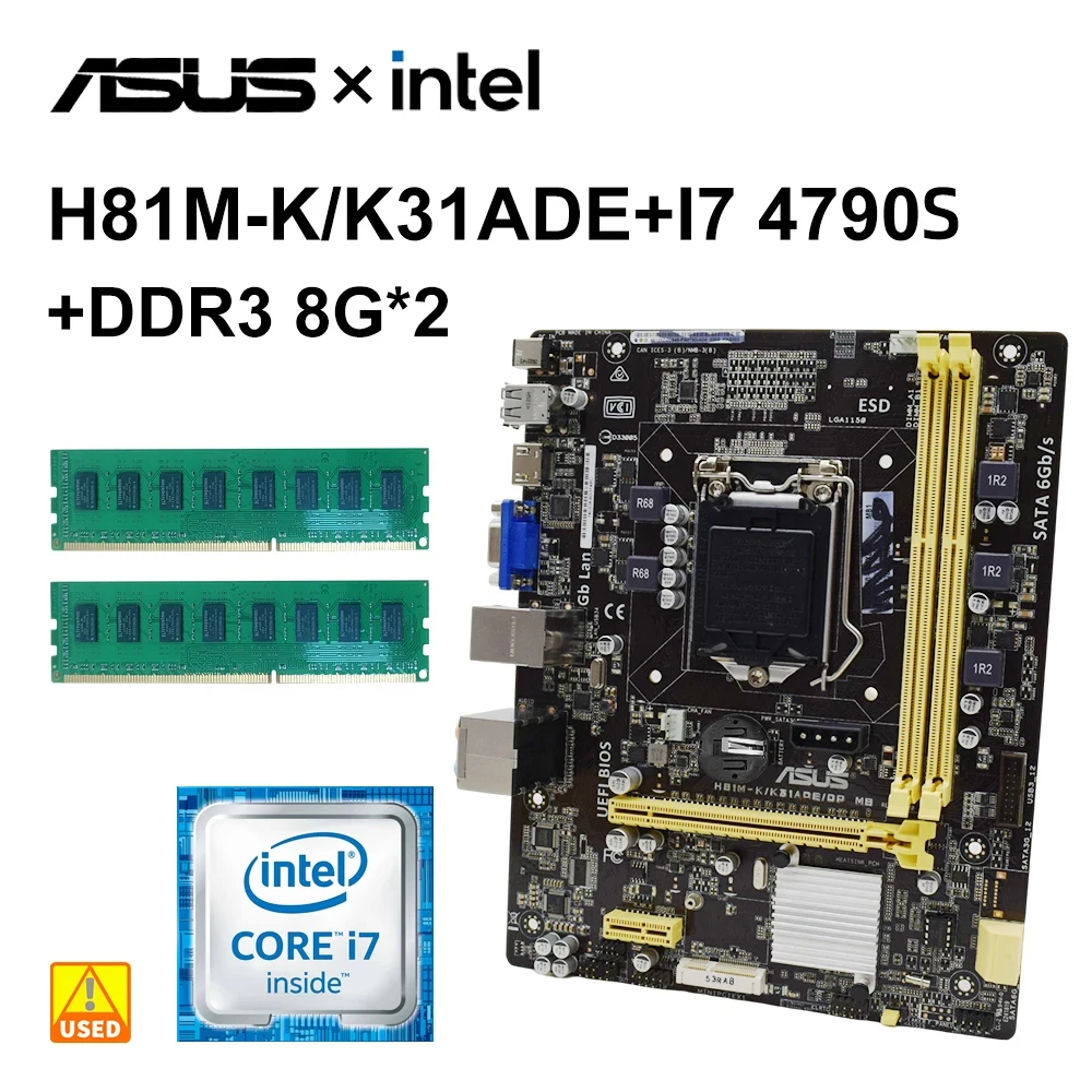 Comprar Kit de placa base 1150 ASUS H81M-K/K31ADE con cpu Core i7 4790S + DDR3 8Gx2 H81, PCI-E 2,0, USB 3,0, Micro ATX