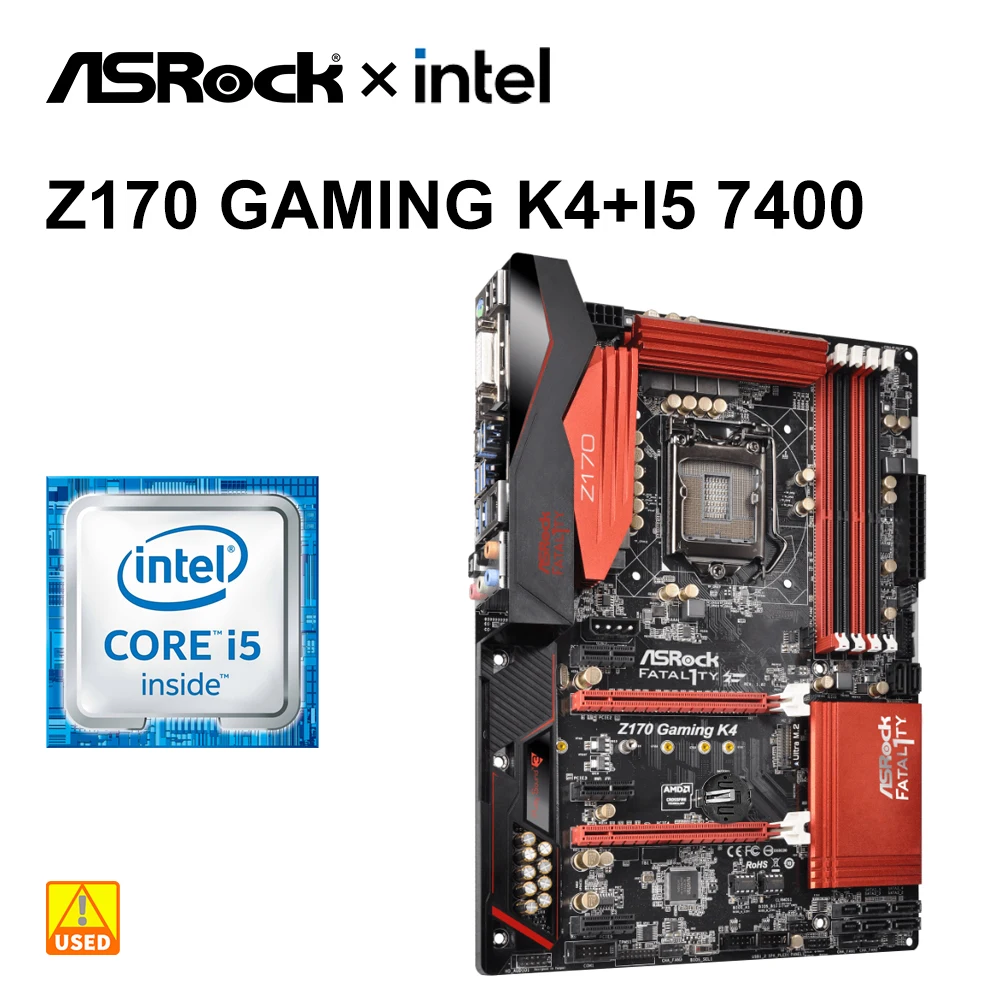 Comprar Kit de placa base Asrock Z170 Gaming K4, con cpu I5-7400 + DDR4 8G x2 Z170, PCI-E 115 PCI-E X16 M.2 8 × SATA 3 USB3.1, 3,0