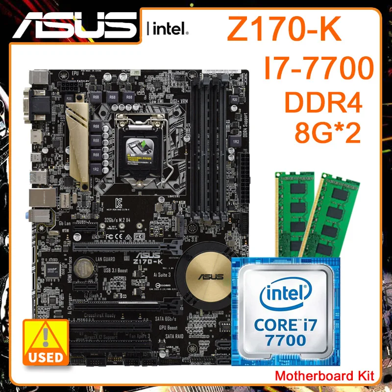 Comprar Kit de placa base LGA 1151 ASUS Z170-K, kit de placa base Core i7-7700 cpu + 2 x DDR4 8G RAM Intel Z170 PCI-E 3,0 USB3.1M.2 ATX