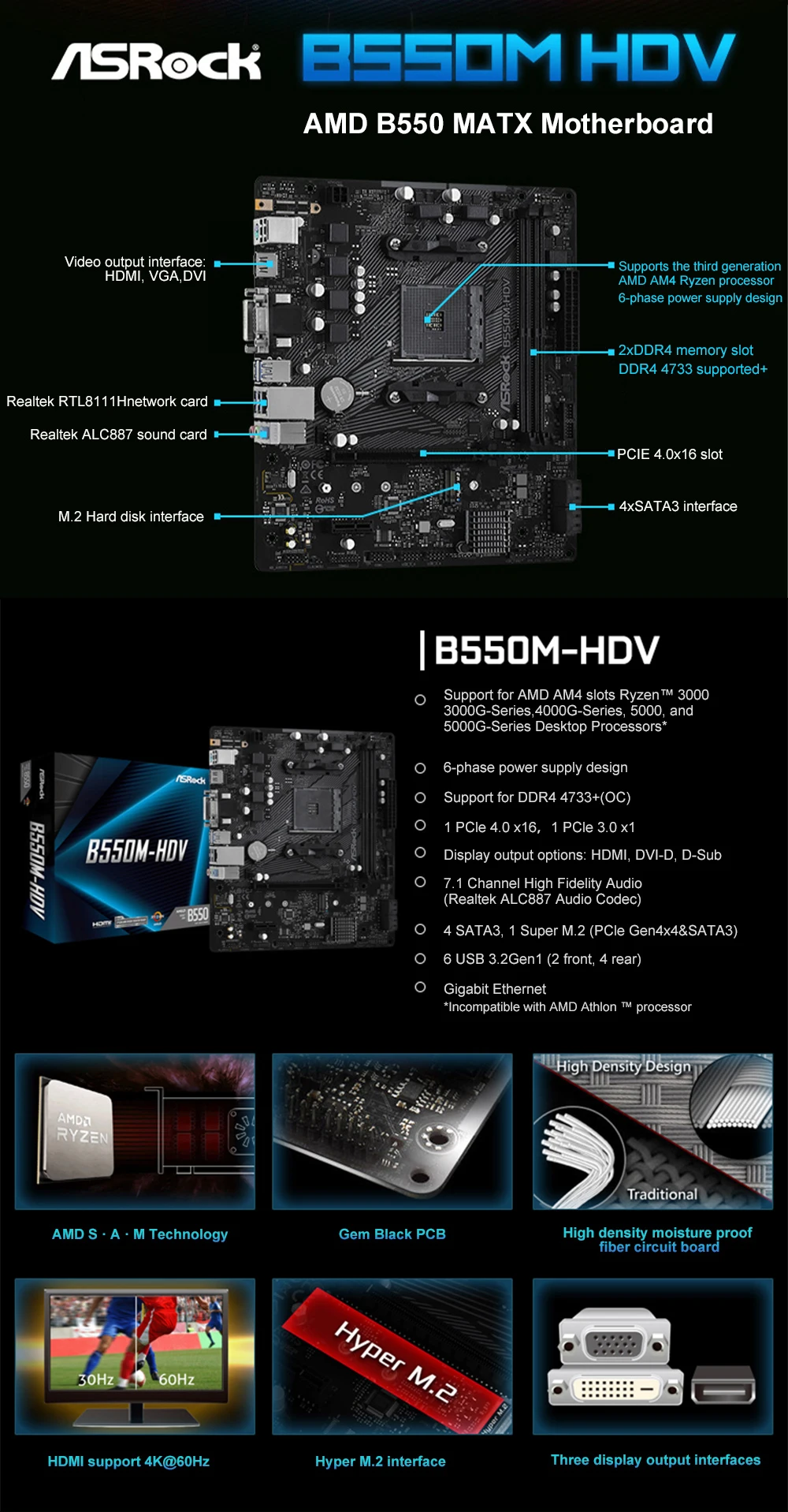 Nuevo Kit AMD Ryzen 5 5500GT procesador CPU + ASRock B550M-HDV placa base Micro-ATX 64GB DDR4 placa base Kit placa Mae AM4 B550