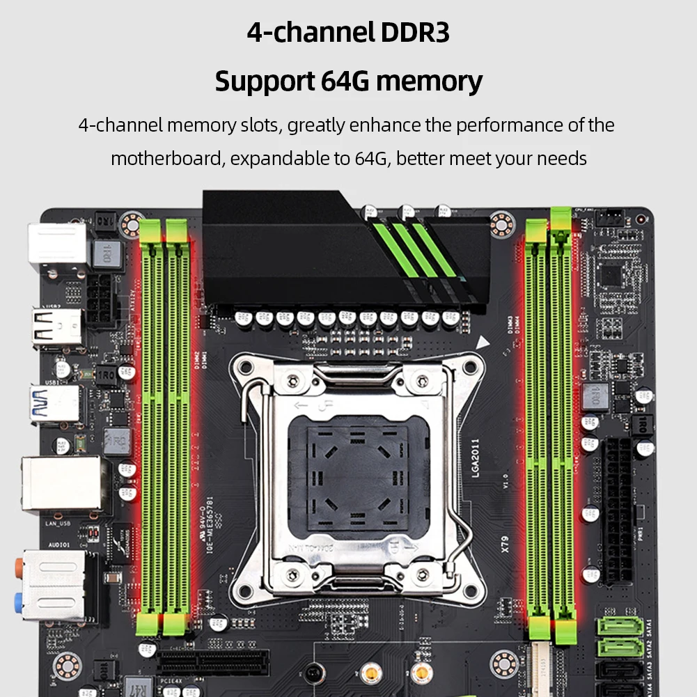 Comprar Kit de Placa base X79 M-ATX LGA 2011, compatible con canales duales 4 x DDR3, NVME, M.2, SATA 3,0, Placa madre AE, LGA2011, hasta 64GB