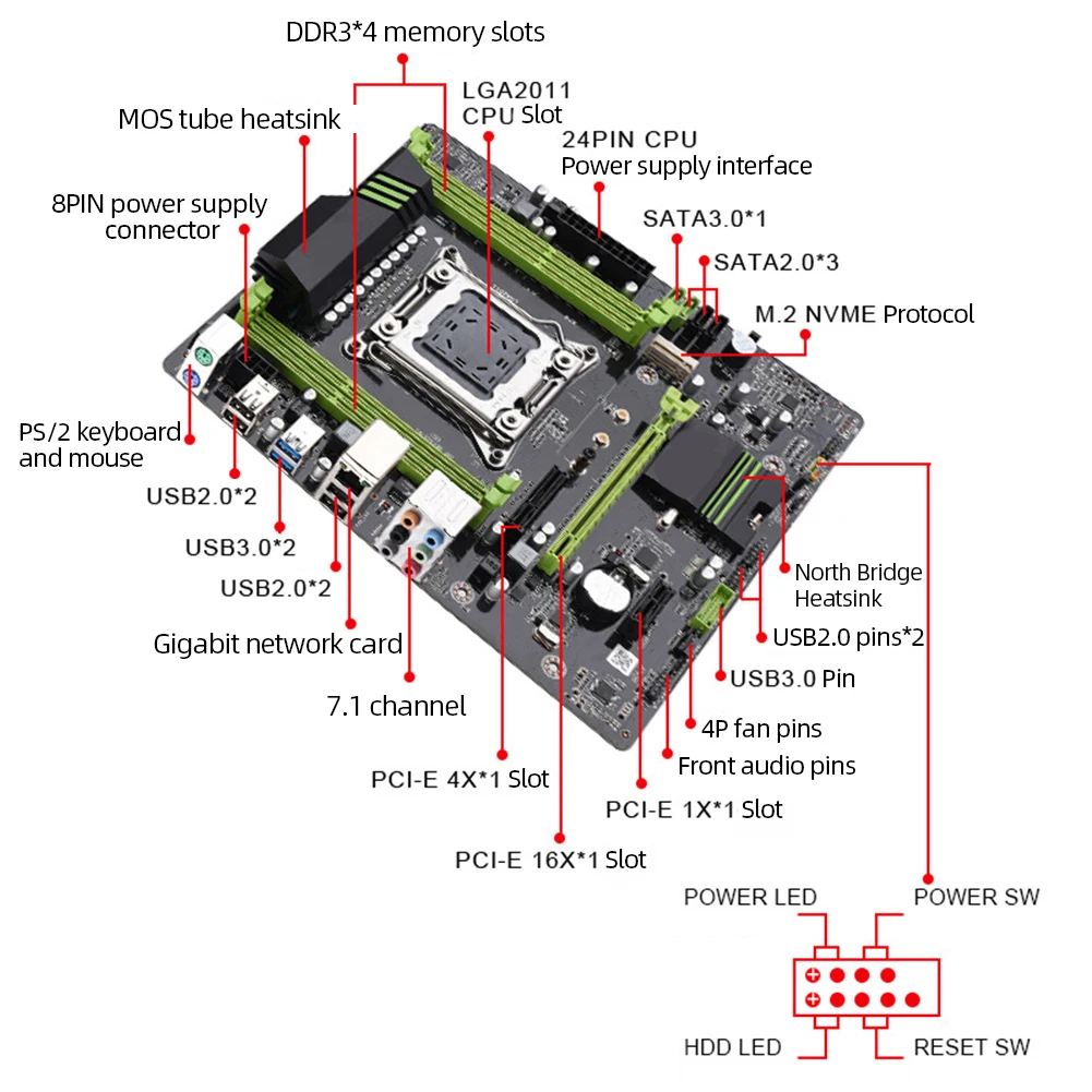 1. Admite hasta 4 ranuras de memoria DDR3:Esta placa base de escritorio admite cuatro ranuras de memoria DDR3 con una capacidad máxima de memoria de 64GB. Esto mejora significativamente el rendimiento de la placa base, ofreciendo velocidades de transferencia de datos más rápidas.