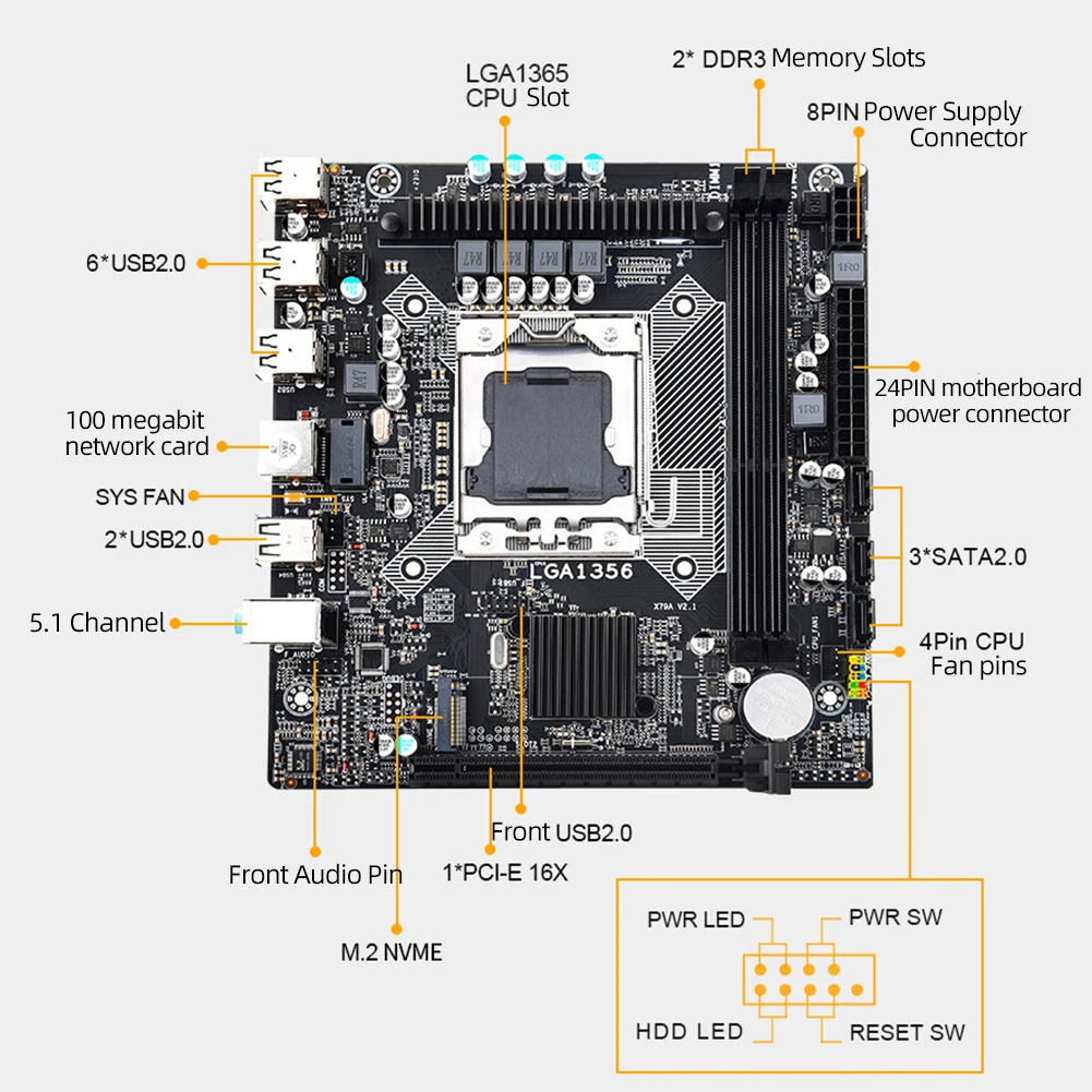 3. Memoria DDR3 de doble canal:La placa base del ordenador admite 2 puertos de 32GB, con una capacidad máxima de hasta 64GB de RAM. Esto garantiza un rendimiento de memoria rápido y eficiente.
