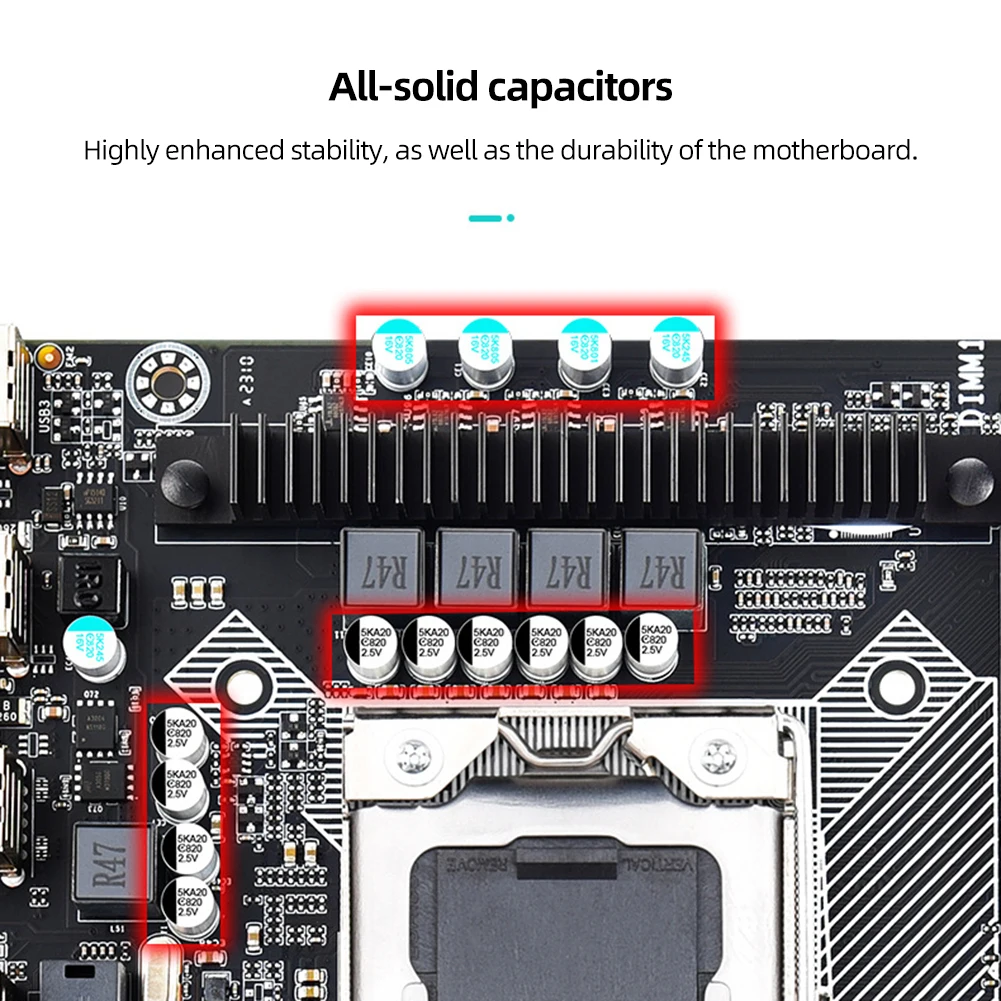 4. Condensadores de estado sólido:La placa principal del PC está equipada con condensadores de estado sólido que proporcionan estabilidad y durabilidad, mejorando en gran medida el rendimiento general de la placa base.
