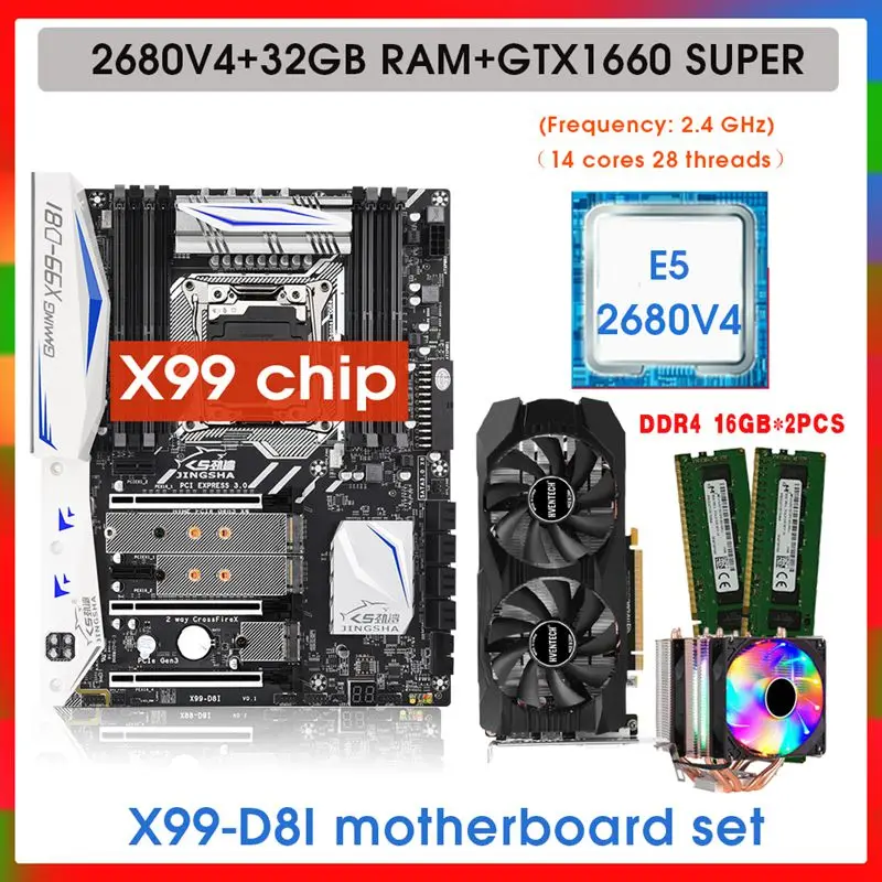 Comprar KIT de placa base X99-D8I Xeon E5 2680 V4, CPU de 32GB de RAM (16GB x 2) Con GTX 1660S, tarjeta de vídeo de 6GB y enfriador