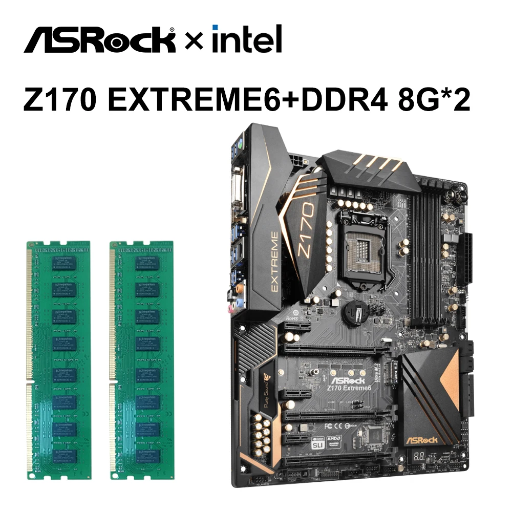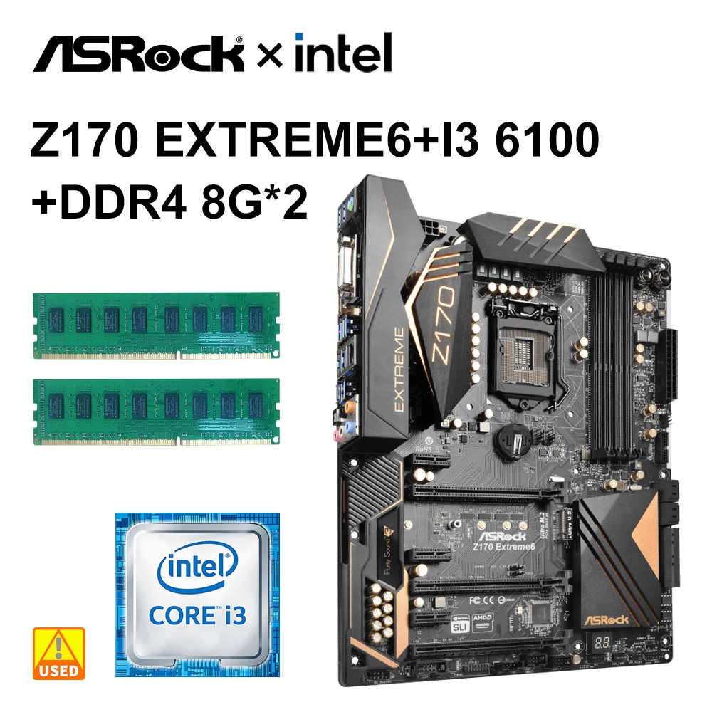 Comprar Kit de placa base Z170 Asrock Z170 Extreme6 con i3-6100 + DDR4 8Gx2 LGA 1151, juego de placa base USB3.1 1 × M.2 PCI-E 3,0 ATX