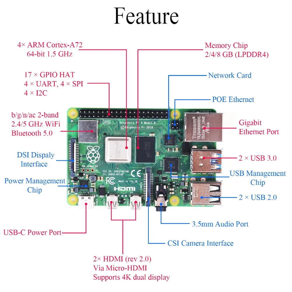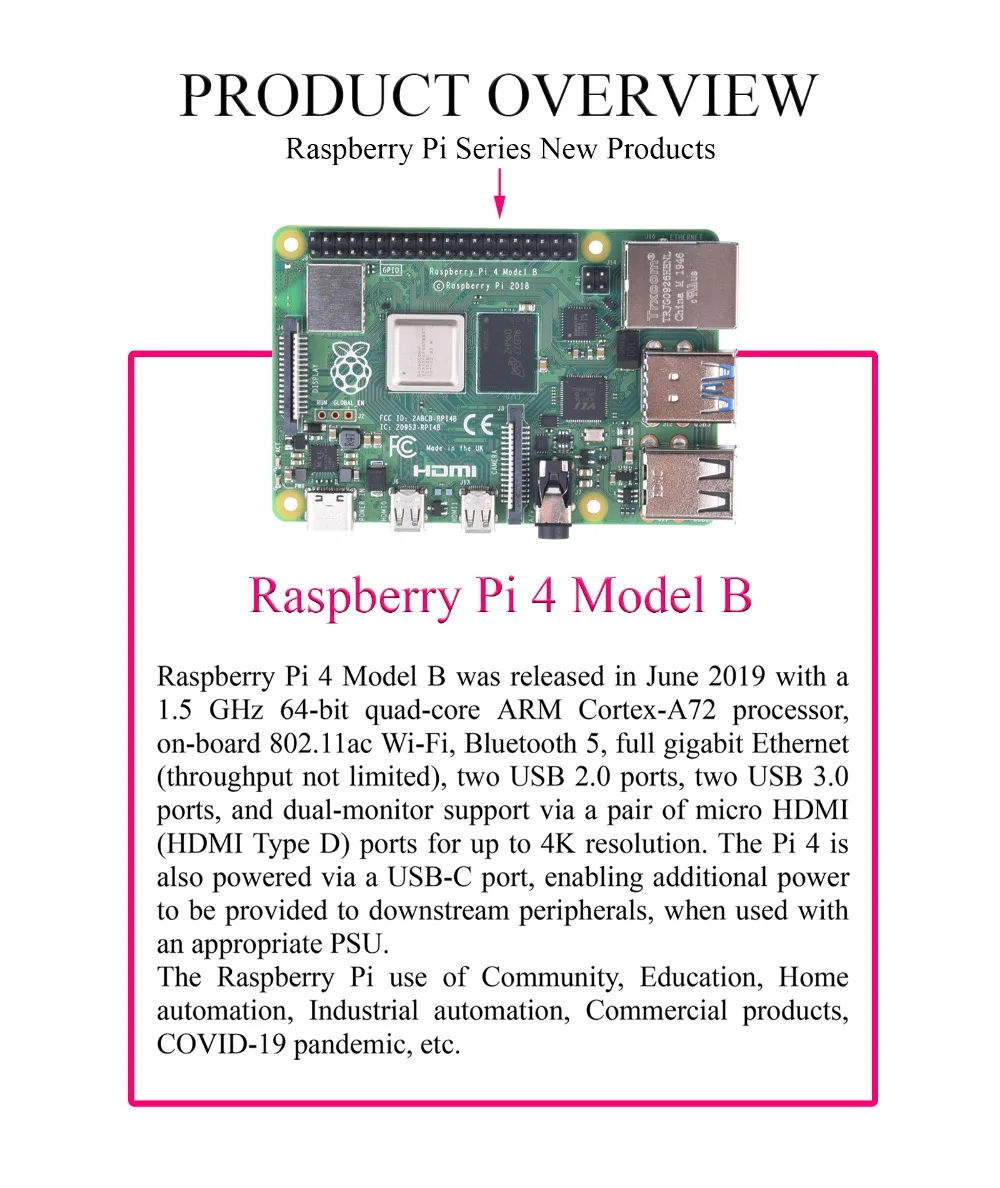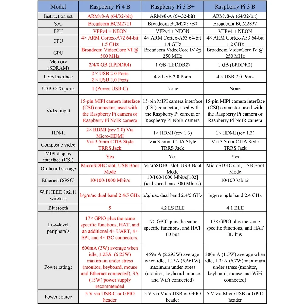 Kit de placa de desarrollo Original Raspberry Pi 4 Modelo B RAM 2G 4G 8G 4 Core CPU 1,5 Ghz 2,4G y 5G WiFi Bluetooth 5,0 con Kit de accesoriosCaracterística1. Raspberry Pi 4 Modelo B se lanzó en junio de 2019 con un procesador ARM de cuatro núcleos de 1,5 GHz y 64 bits, Wi-Fi 802.11ac integrado, Bluetooth 5,0 gigabit Ethernet completo (rendimiento no limitado), dos puertos USB 2,0, dos puertos USB 3,0 y Soporte de doble monitor a través de un par de micro HDMI (HDMI tipo D). Puertos para una resolución de hasta 4K.2. La Pi 4 también se alimenta a través de un puerto, lo que permite proporcionar energía adicional a los periféricos posteriores, cuando se utiliza con una fuente de alimentación adecuada.3. La entrada de vídeo utiliza un conector de interfaz de cámara MIPI (CSI) de 15 Pines, que se utiliza con la cámara Raspberry Pi o la cámara Raspberry Pi NoIR.4. Los periféricos de bajo nivel son 17 × GPIO más las mismas funciones específicas, HAT y conectores adicionales 4 × UART, 4 × SPI y 4 × I2C.5. Las clasificaciones de potencia son 600mA (3W) promedio cuando está inactivo, 1.25A (6,25 W) máximo bajo estrés (Monitor, teclado, mouse y Ethernet conectado), 3A (15W) fuente de alimentación recomendada.6. Soporte Raspbian para, una distribución Linux basada en Debian (32 bits), así como sistemas Ubuntu de terceros, Windows 10 IoT Core, RISC OS y LibreELEC.7. Raspberry Pi utiliza productos comunitarios, educativos, domóticos, industriales, comerciales, etc.100% nuevo y de alta calidad.Forma y color: Igual que en la imagen.¡Escriba a su elección!¡Cantidad a su elección!¡Gracias por su visita y feliz cooperación!Nota: Los datos de medición tienen un error de 1% a 5% debido a la naturaleza y las herramientas de medición.