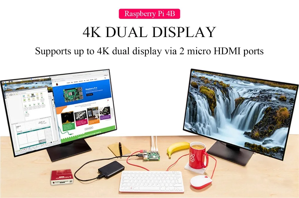 Comprar Kit de placa de desarrollo Raspberry Pi 4 Modelo B, Original, 2G, 4G, 8G, CPU de 4 núcleos, 1,5 Ghz, 2,4G y 5G, WiFi, Bluetooth 5,0 con accesorio