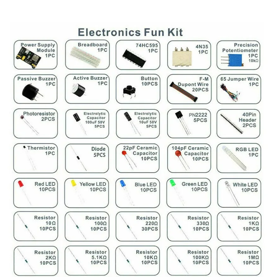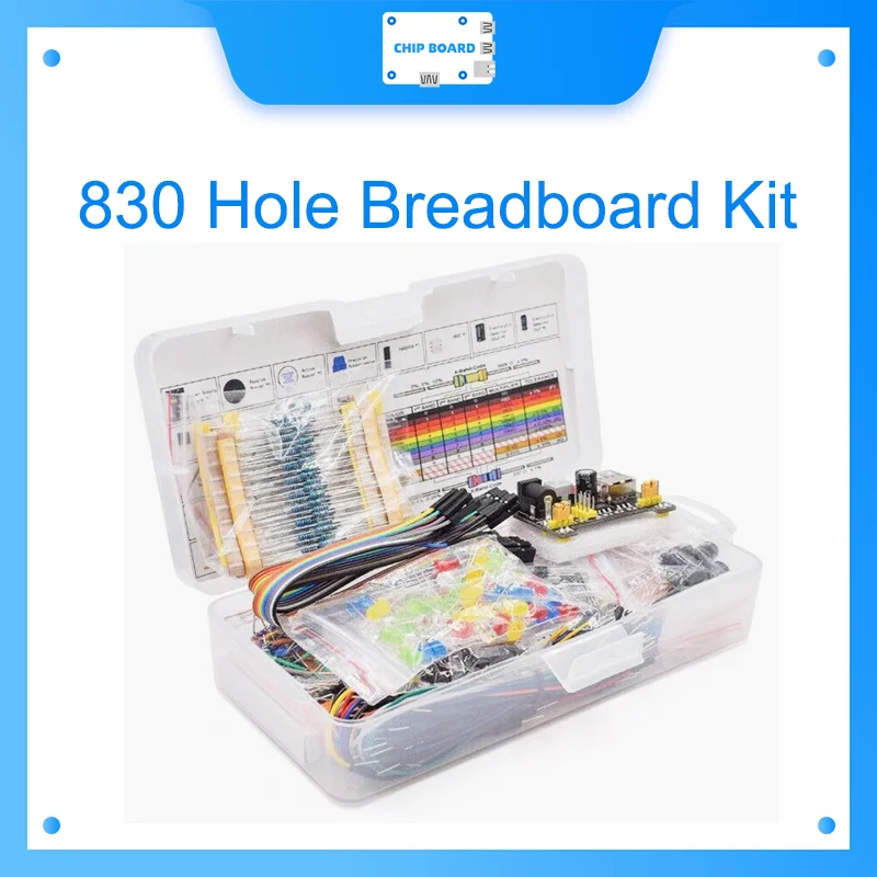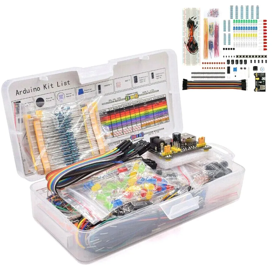 Kit de bricolaje de inicio electrónico de proyecto DIY con tabla de pan de 830 puntos de amarre para juego de componentes electrónicos R3 con caja