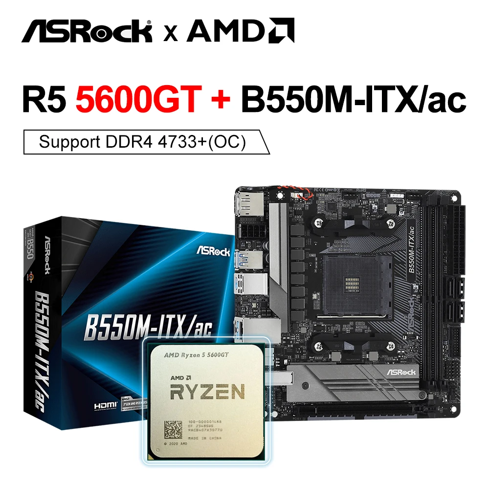 AMD Ryzen 5 5600GT R5 5600GT + ASROCK Nuevo B550M Juego de placas base Procesador Ryzen B550M ITX MiNi-ITX DDR4 64G placa Mae B550