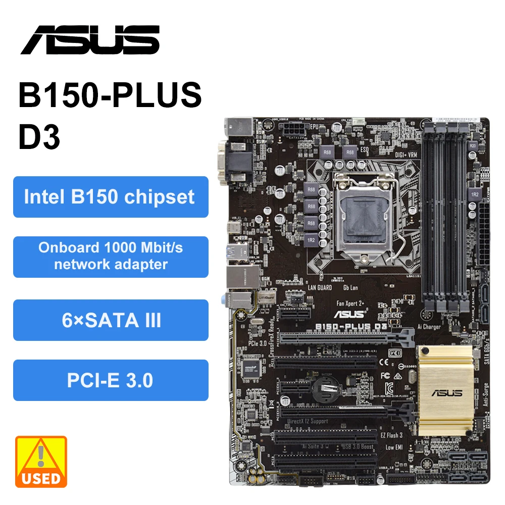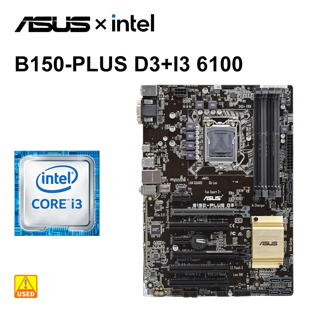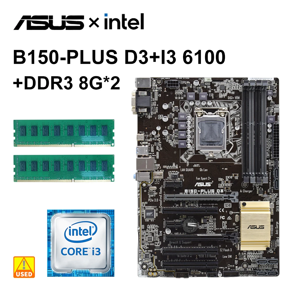 Comprar Kit de placas base LGA 1151 Asus B150-PLUS D3 + I3 6100 cpu + DDR3 8G * 2 B150, placa base PCI-E 3,0 SATA 3 USB 3,0 ATX