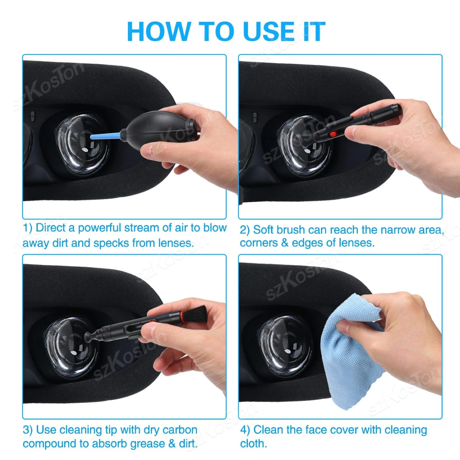 Comprar Kit de pluma de limpieza de lentes VR para Meta Quest 3S, cepillo limpiador de polvo, soplador de aire para Oculus Quest 2/3 Vision Pro VR, accesorios
