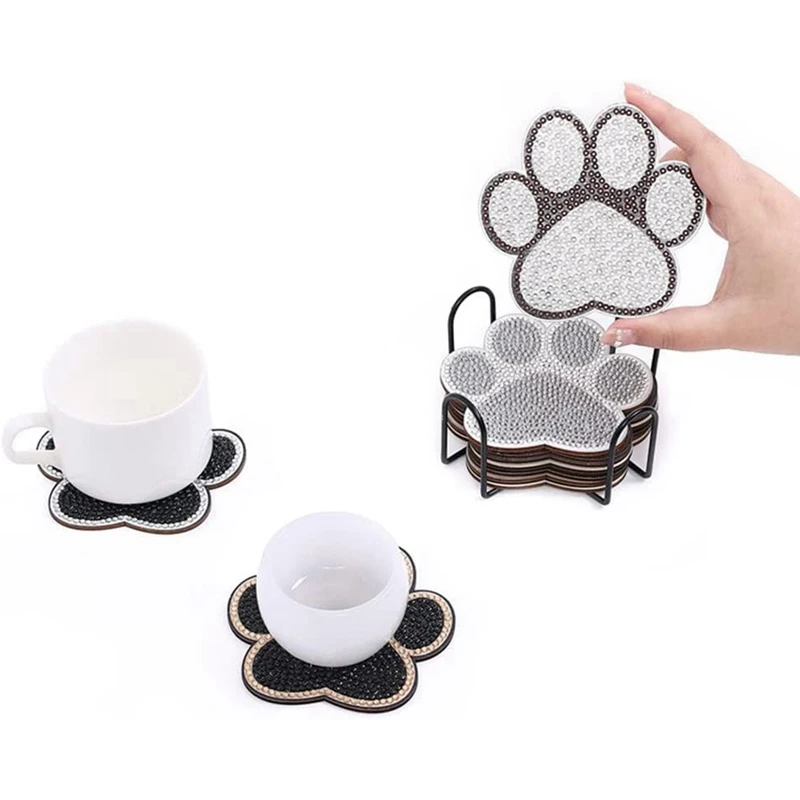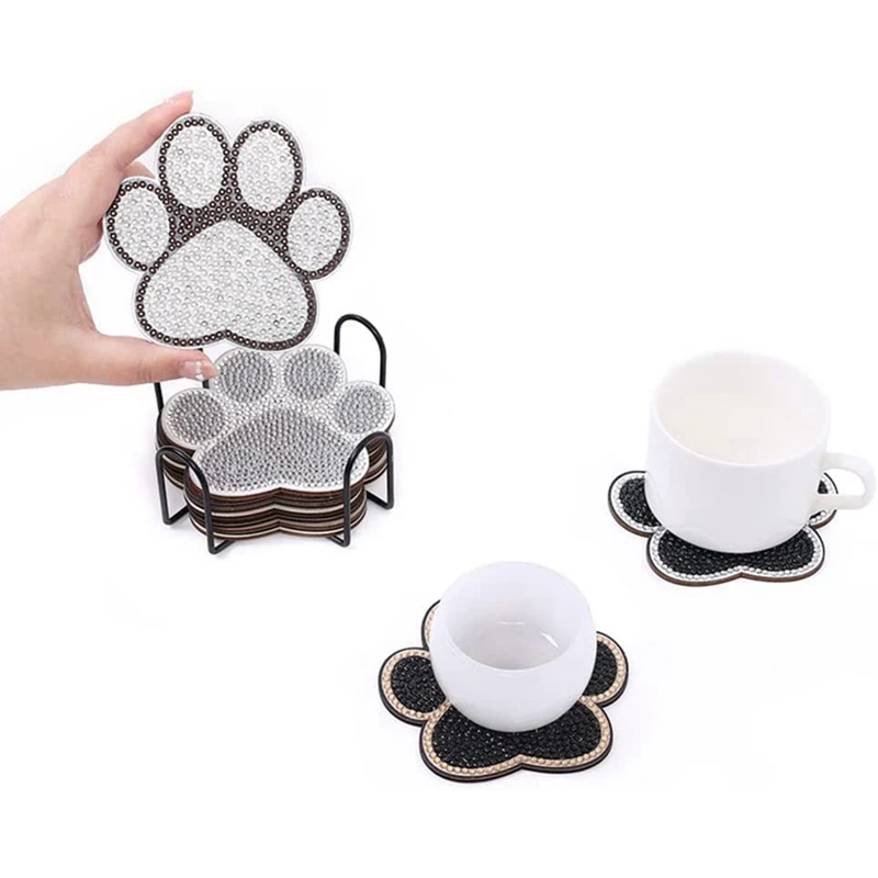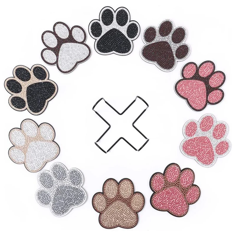 Kit de posavasos con pintura de diamante en forma de pata de perro, Kit de bricolaje para mascotas y gatos con soporte