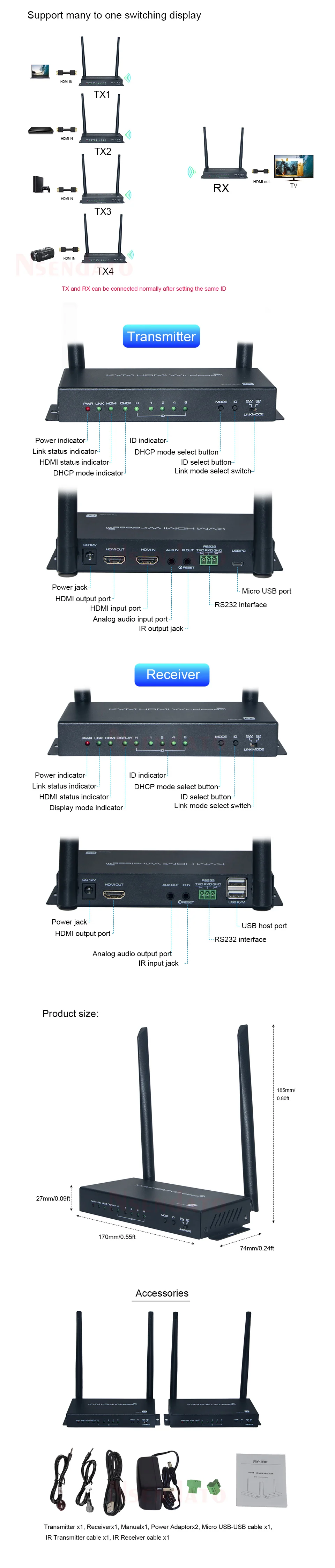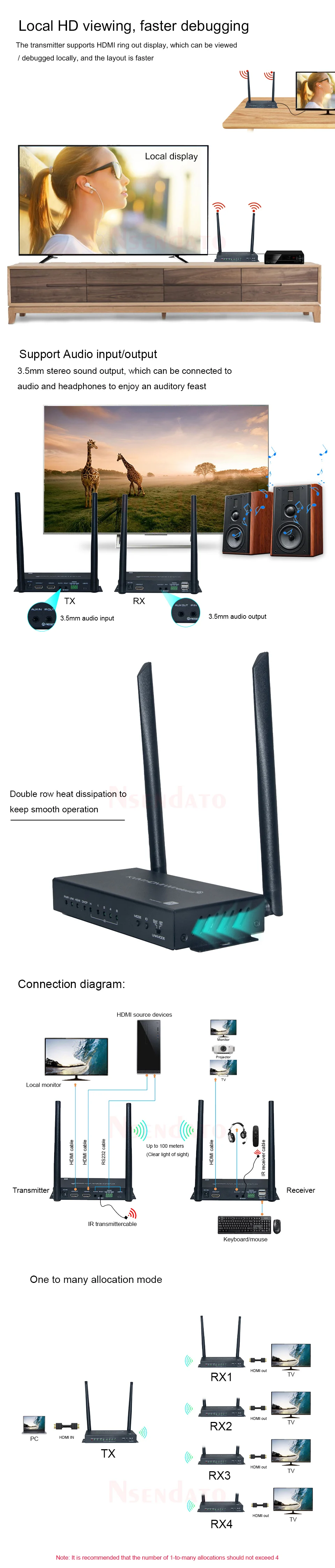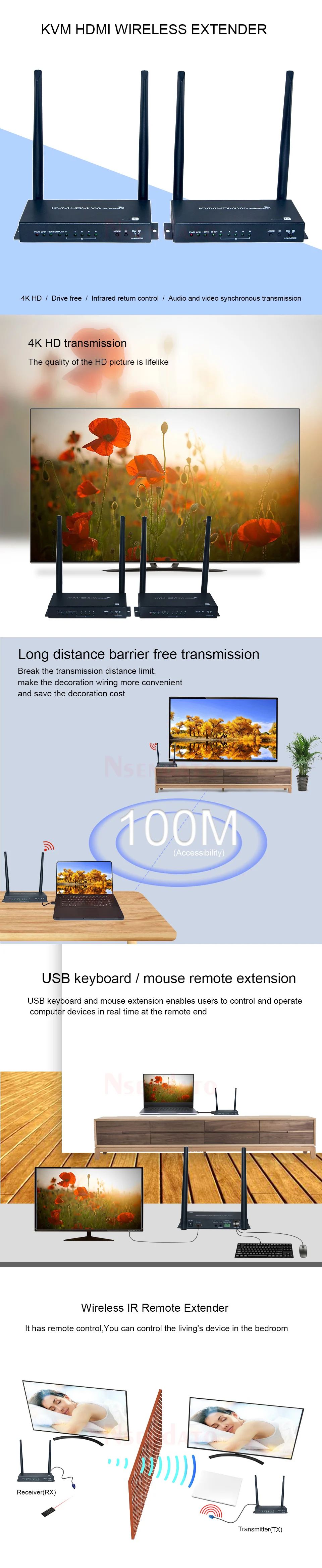 HDMI Wireless Video Transmitter Receiver kit 4K 60Hz 100M UHD HDMI USB KVM Switch Switcher Extender for Mouse keyboard Monitor