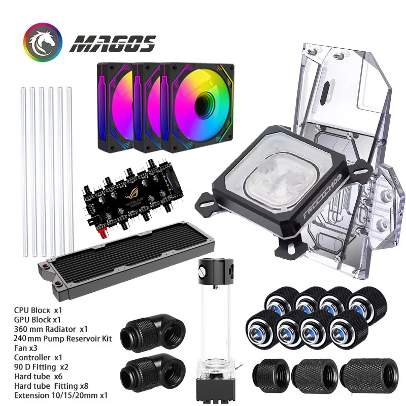 Comprar Kit de refrigeración por agua dividida para PC, tubo duro para Intel/AMD/tarjeta de vídeo/Ryzen/NVIDIA/ventiladores de caja CPU + GPU, juego de refrigeración MOD
