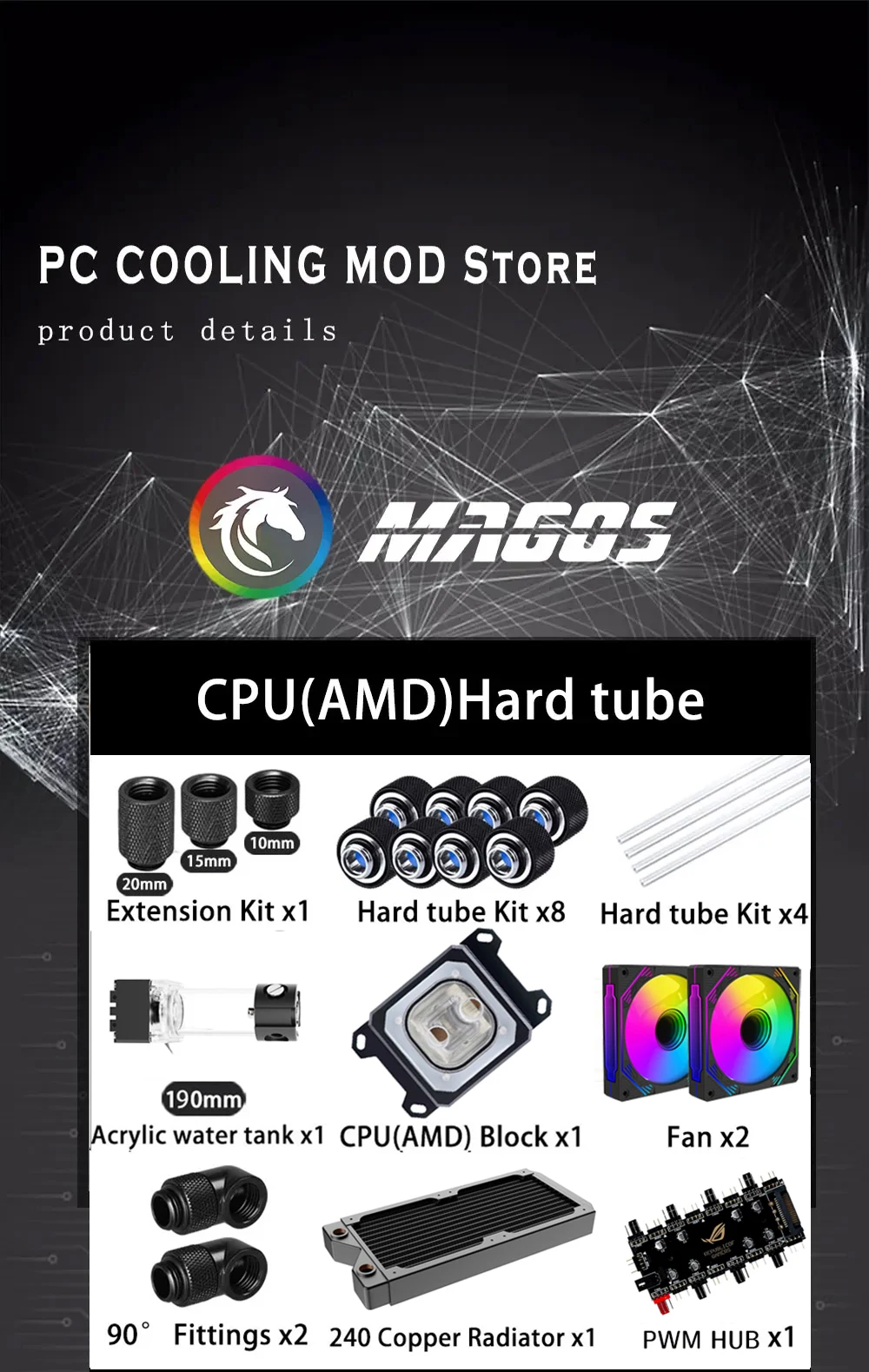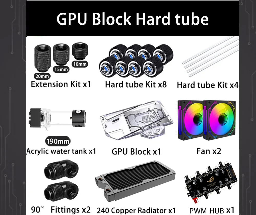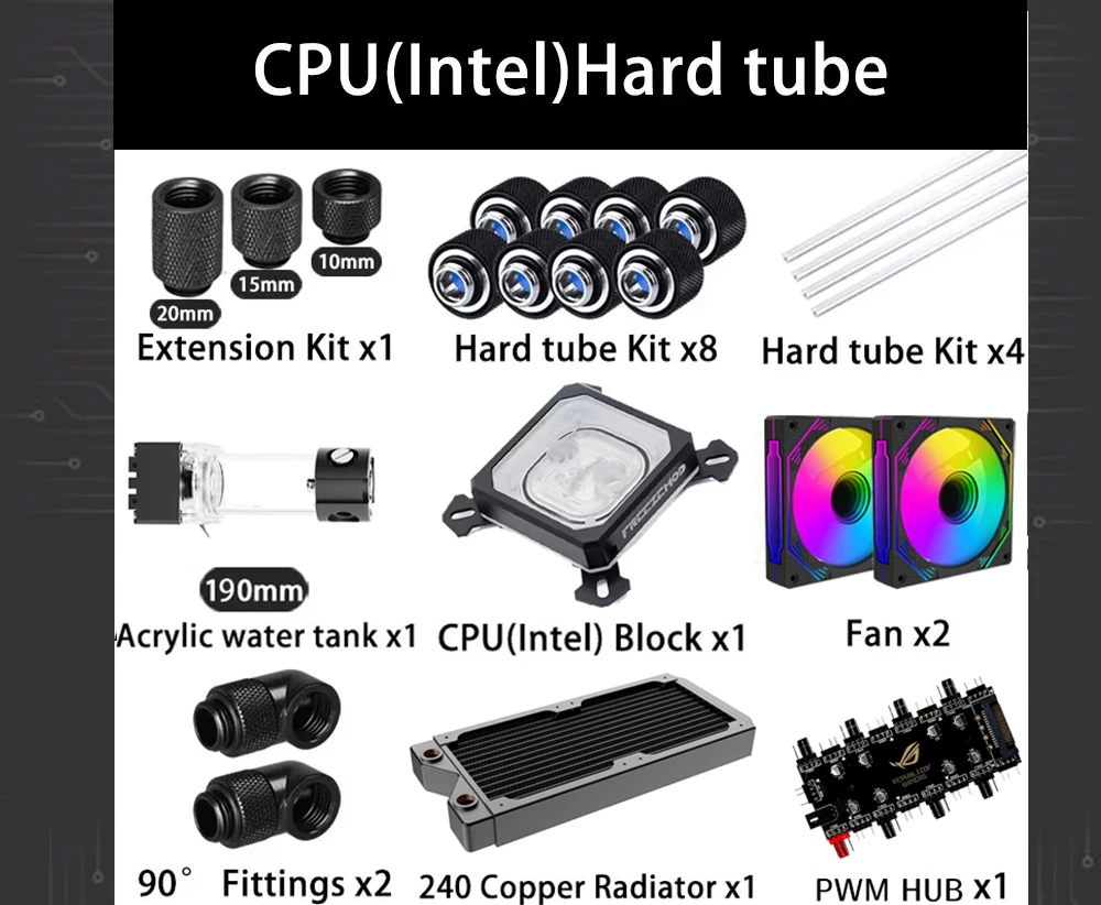 Kit de refrigeración por agua dividida para PC, tubo duro para Intel/AMD/tarjeta de vídeo/Ryzen/NVIDIA/ventiladores de caja CPU + GPU, juego de refrigeración MOD