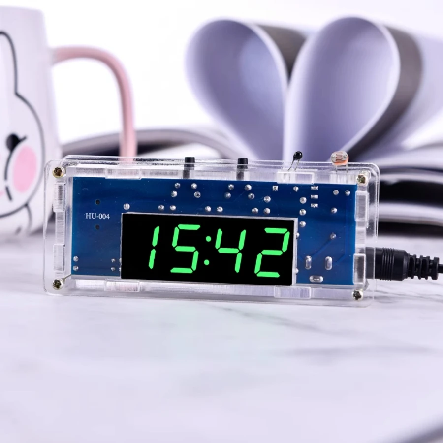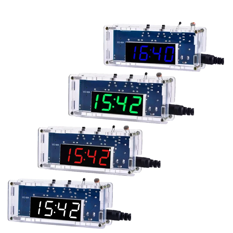 El kit de reloj tiene ajuste automático de brillo, visualización alterna de hora y temperatura, despertador y función de memoria de apagado.