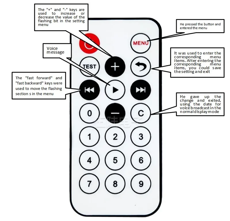 Función del productoHora, mes, día, semana, visualización de temperatura, memoria de apagado, reloj despertador con control remoto infrarrojo, transmisión de voz, reloj despertador, cronómetro