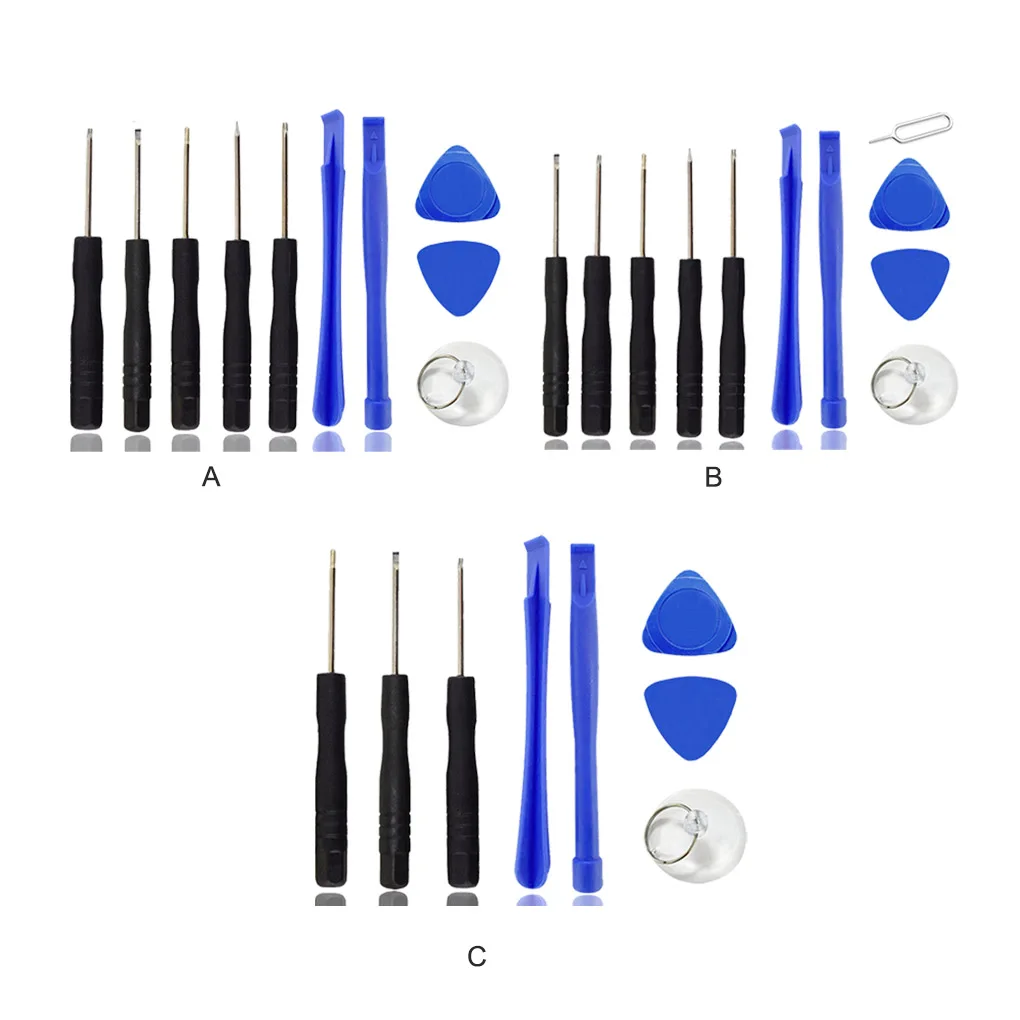 Diferentes herramientas: este juego de destornilladores de herramientas de apertura de teléfono puede ayudarlo a abrir un teléfono, viene con Destornilladores, herramienta de palanca y ventosa.