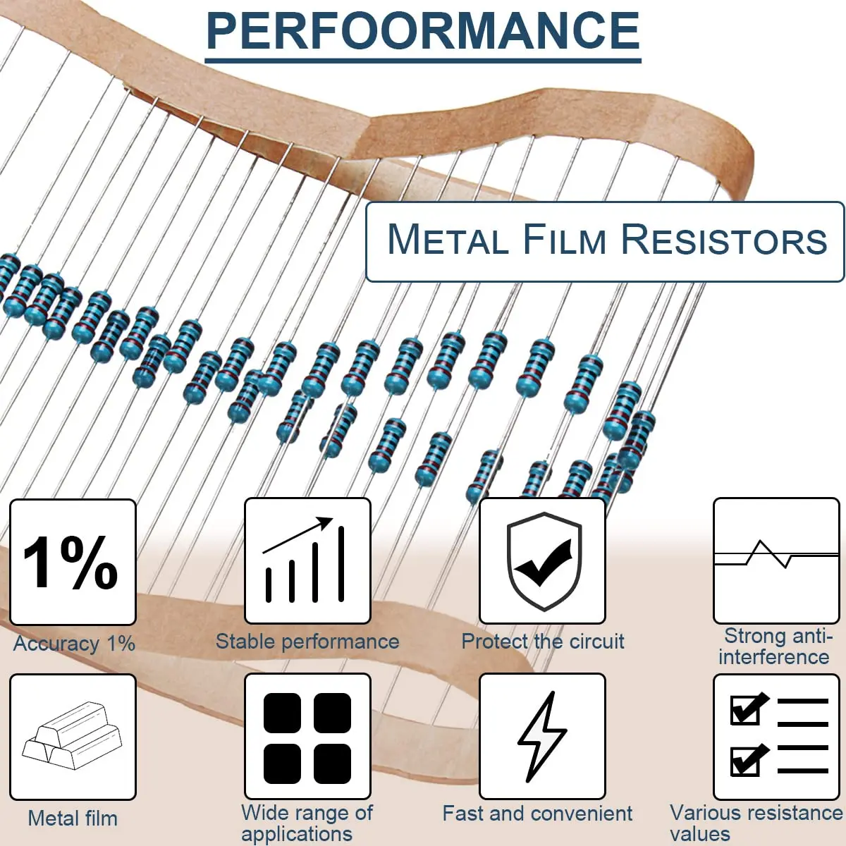 • Amplia aplicación: este kit de resistencia se puede utilizar para varios proyectos electrónicos de bricolaje y experimentos eléctricos, un muy buen Kit de componentes para tener.